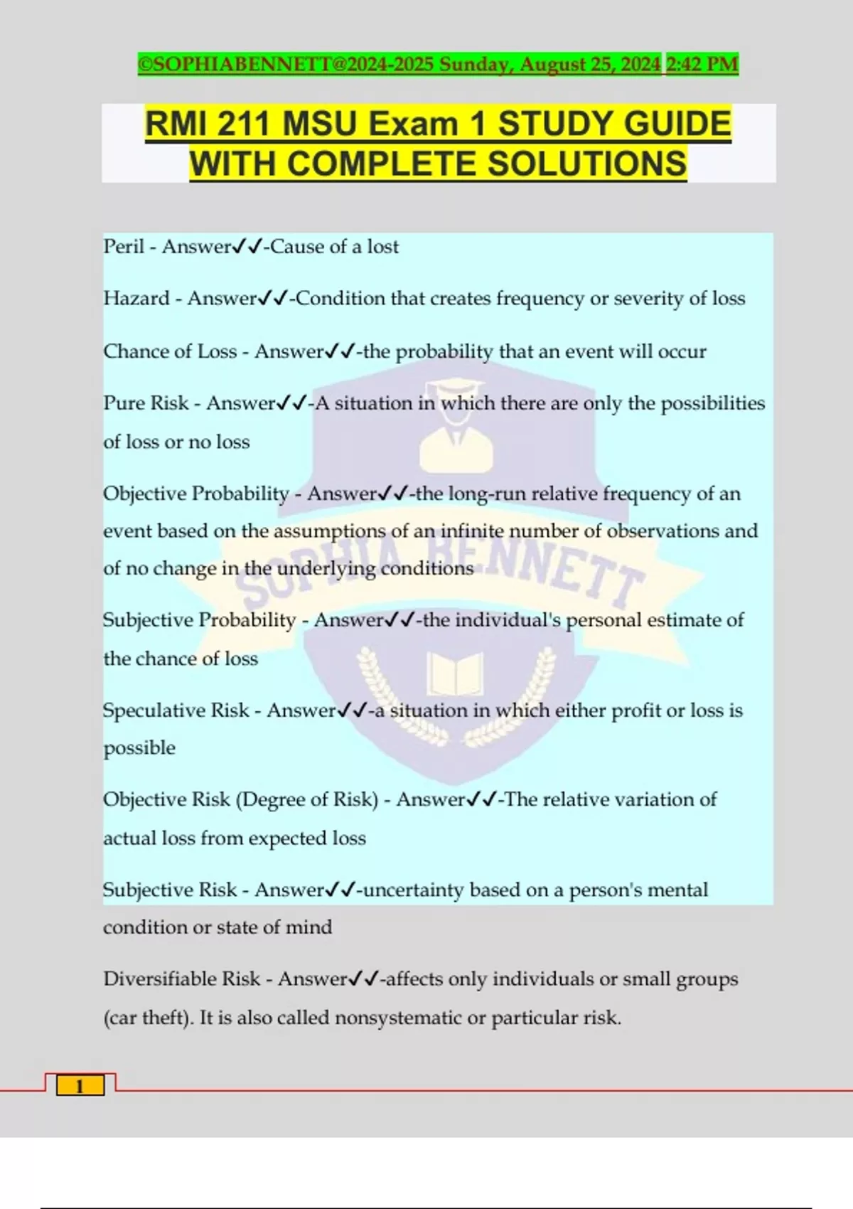 RMI 211 MSU Exam 1 STUDY GUIDE