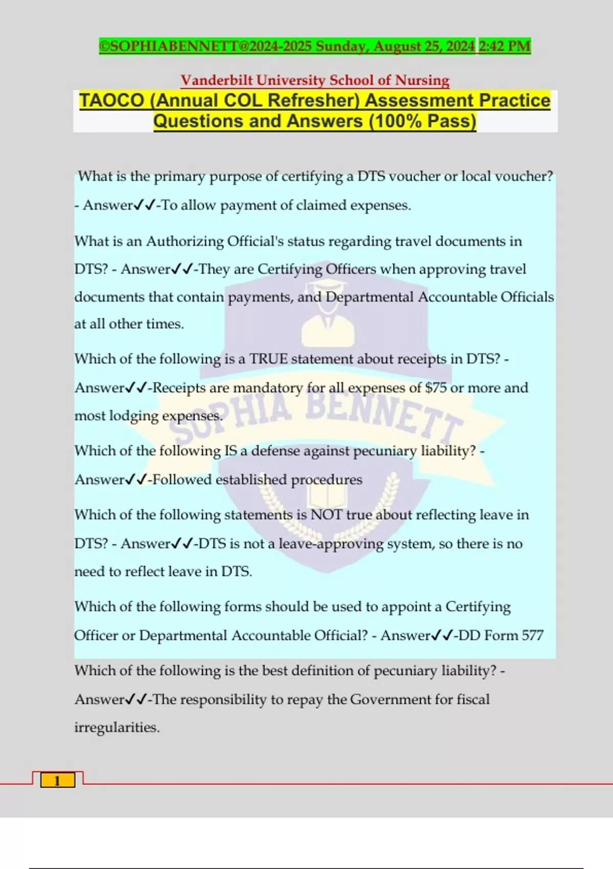 Questions and Answers (100% Pass)