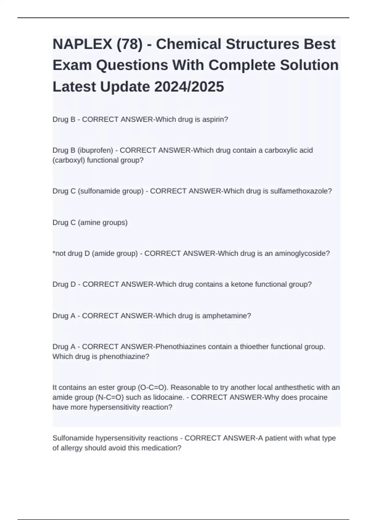 Drug B (ibuprofen) - CORRECT ANSWER-Which drug contain a carboxylic acid