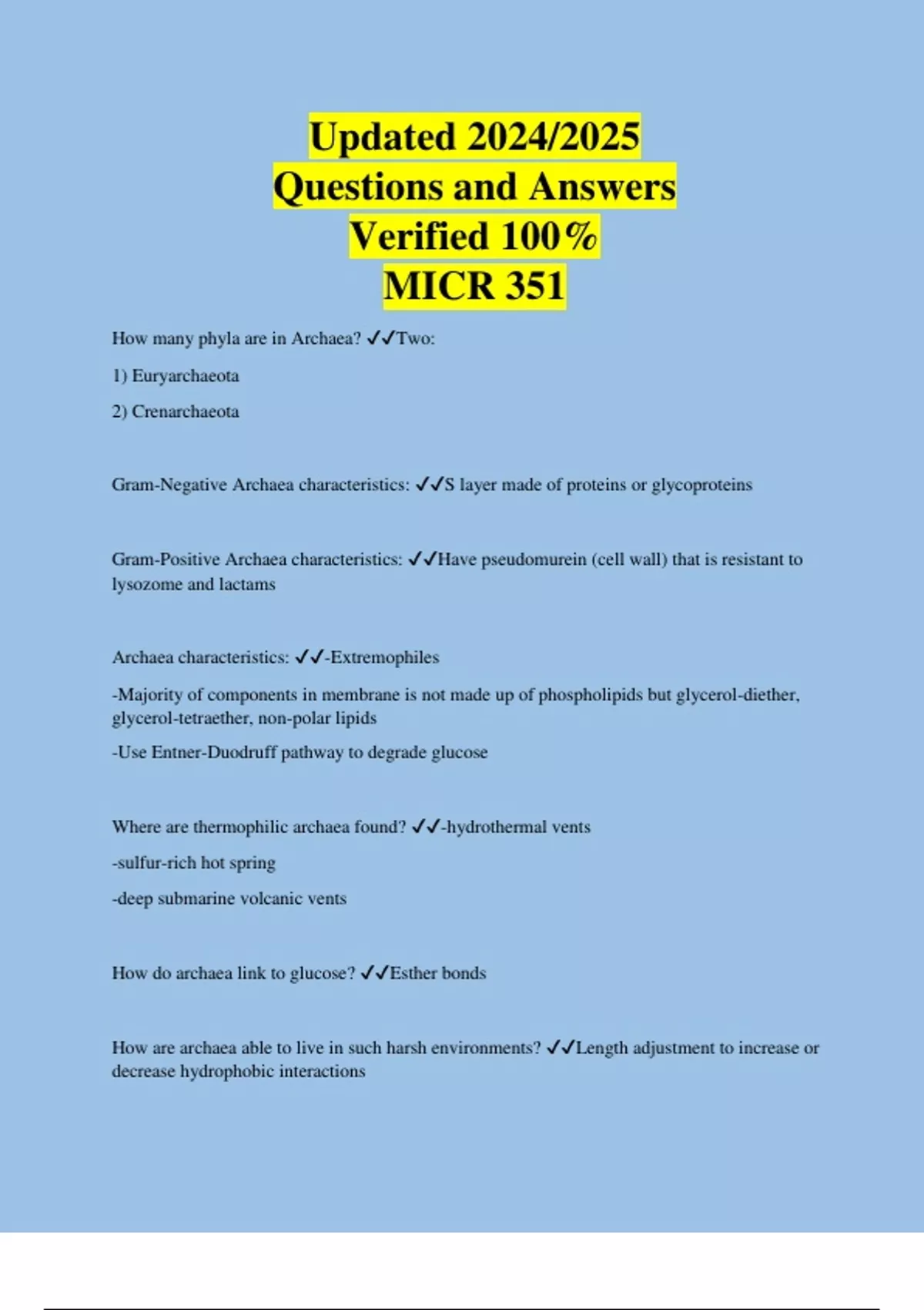 Archaea characteristics: ✔✔-Extremophiles