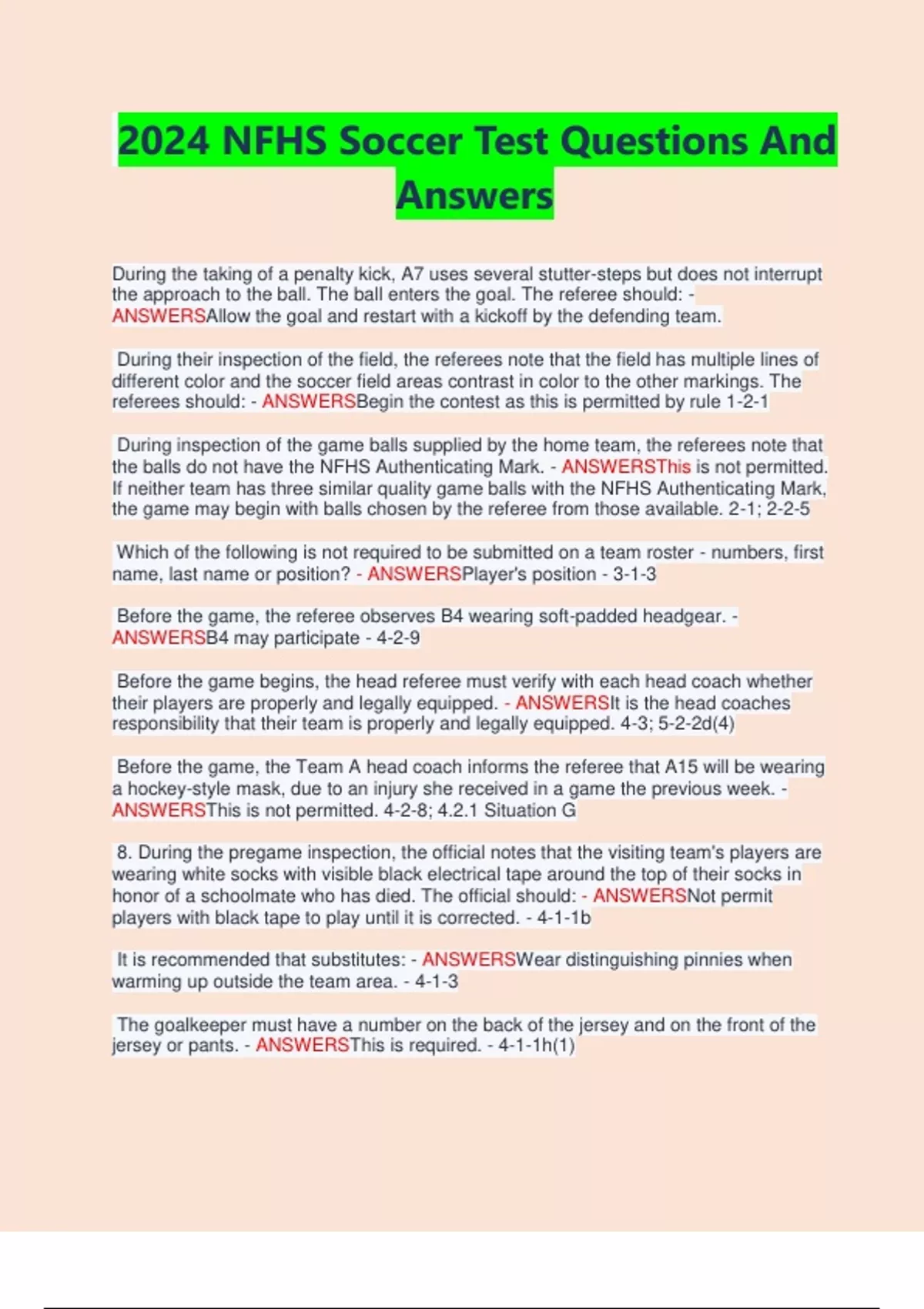 jersey or pants. - ANSWERSThis is required. - 4-1-1h(1)