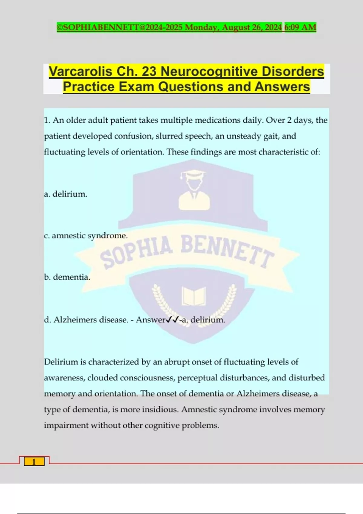 Varcarolis Ch. 23 Neurocognitive Disorders