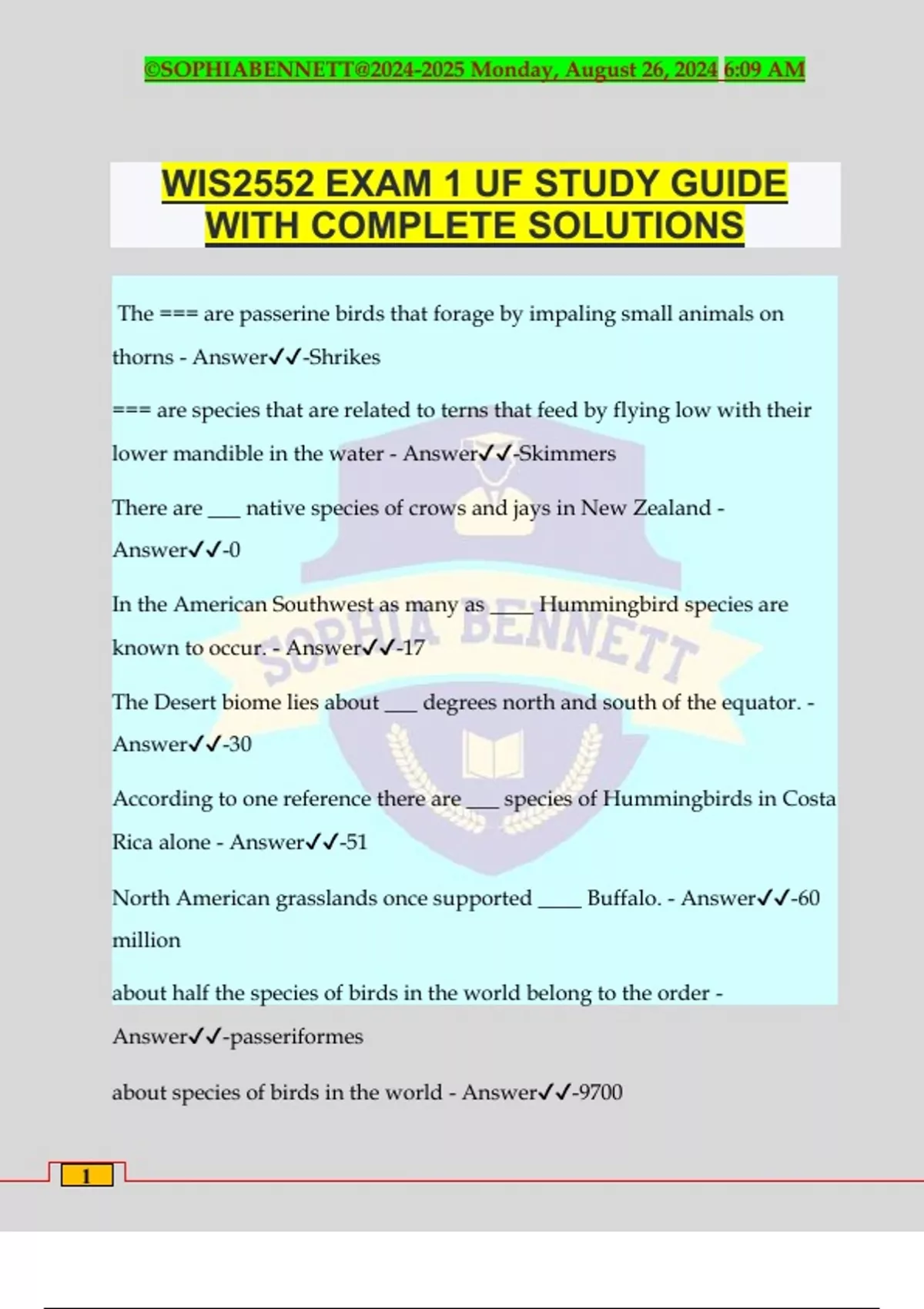 WIS2552 EXAM 1 UF STUDY GUIDE