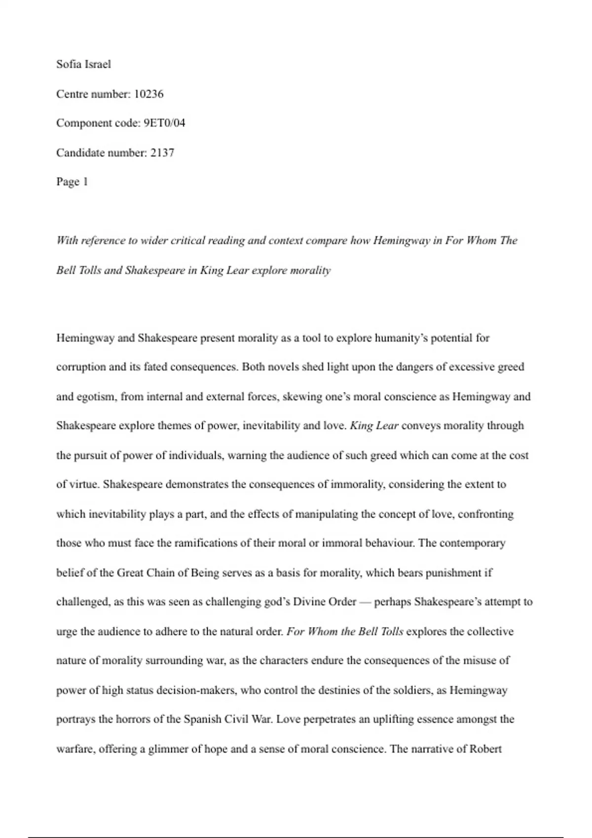 Hemingway and Shakespeare present morality as a tool to explore humanity’s potential for