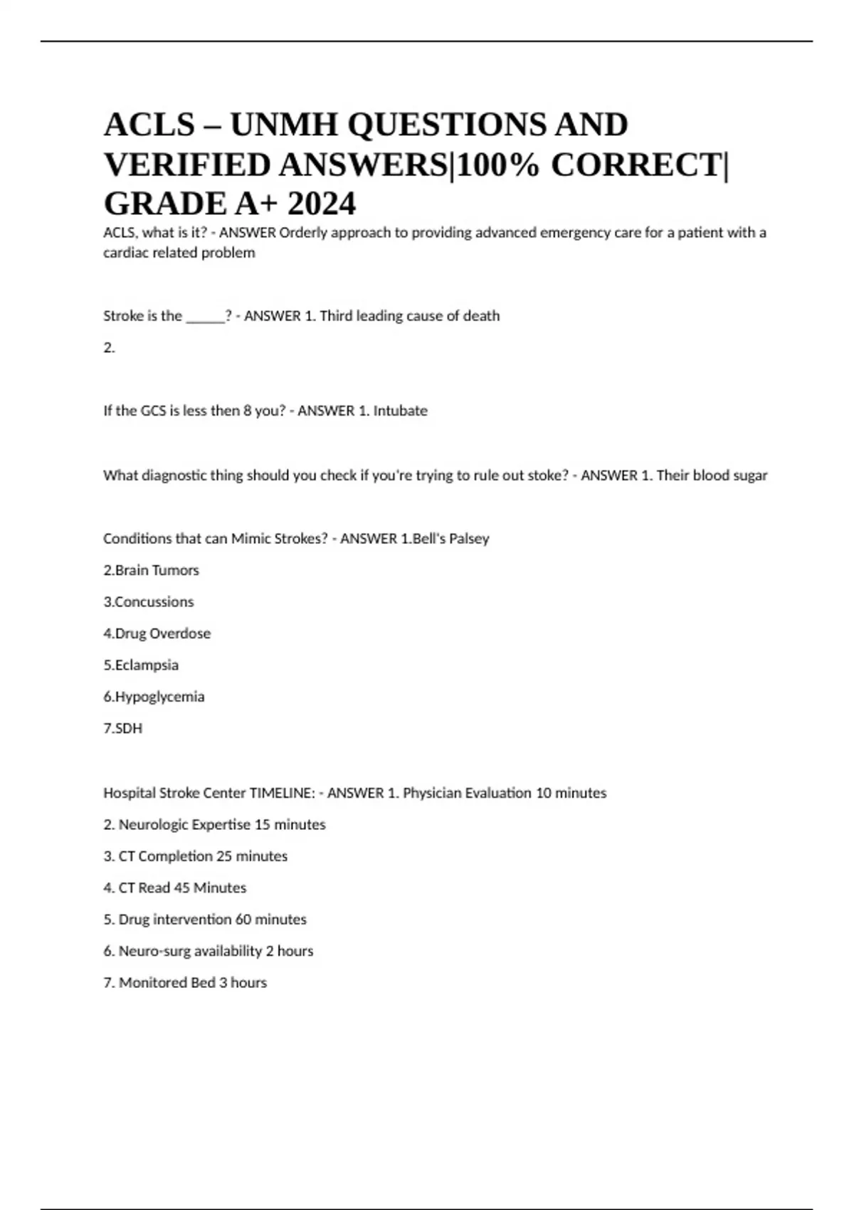 ACLS – UNMH QUESTIONS AND VERIFIED ANSWERS|100% CORRECT|GRADE A+ 2024