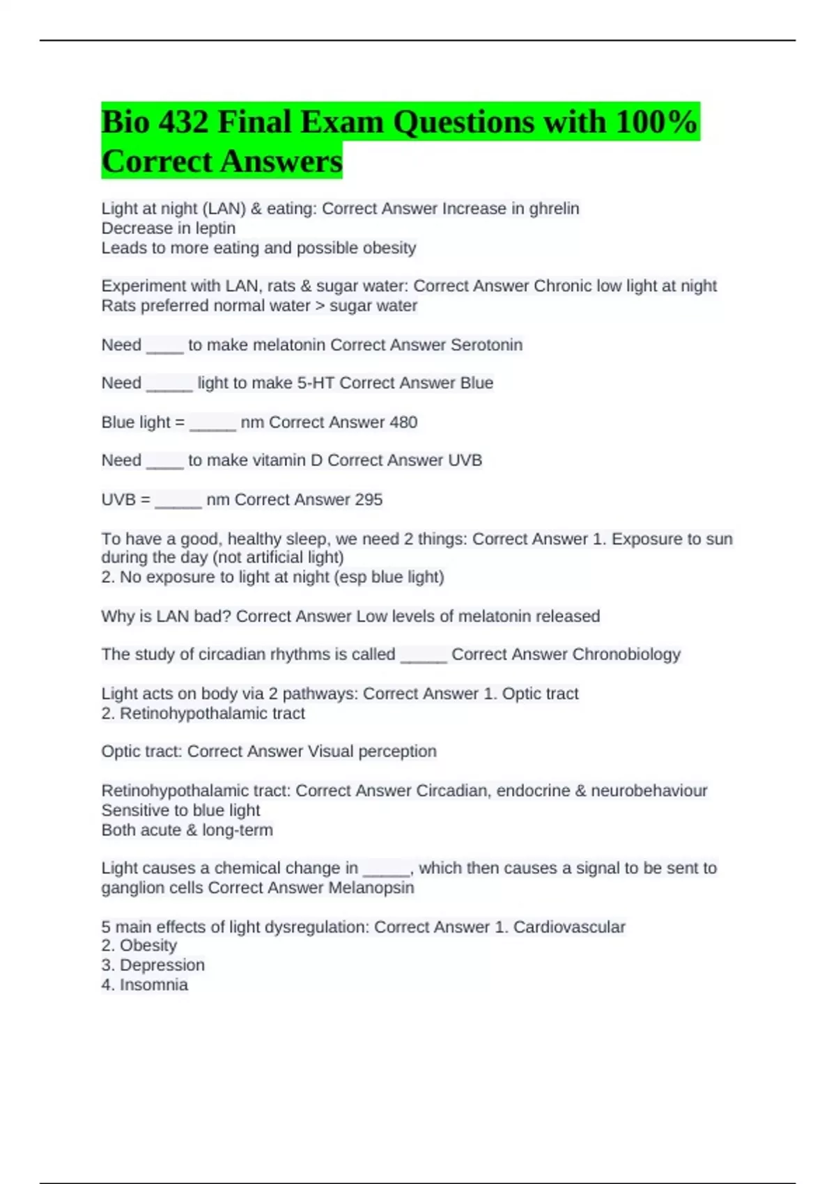 Need _____ light to make 5-HT Correct Answer Blue