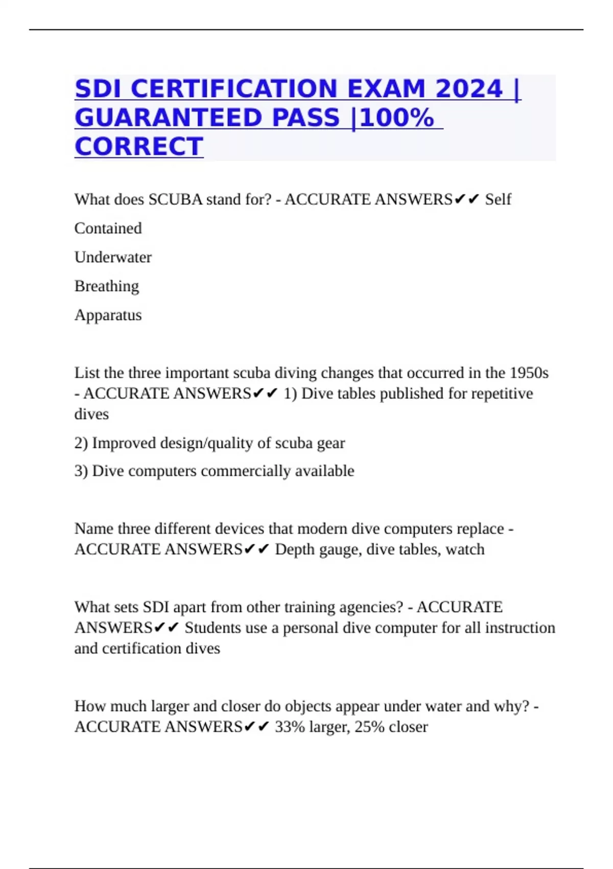 - ACCURATE ANSWERS✔✔ 1) Dive tables published for repetitive