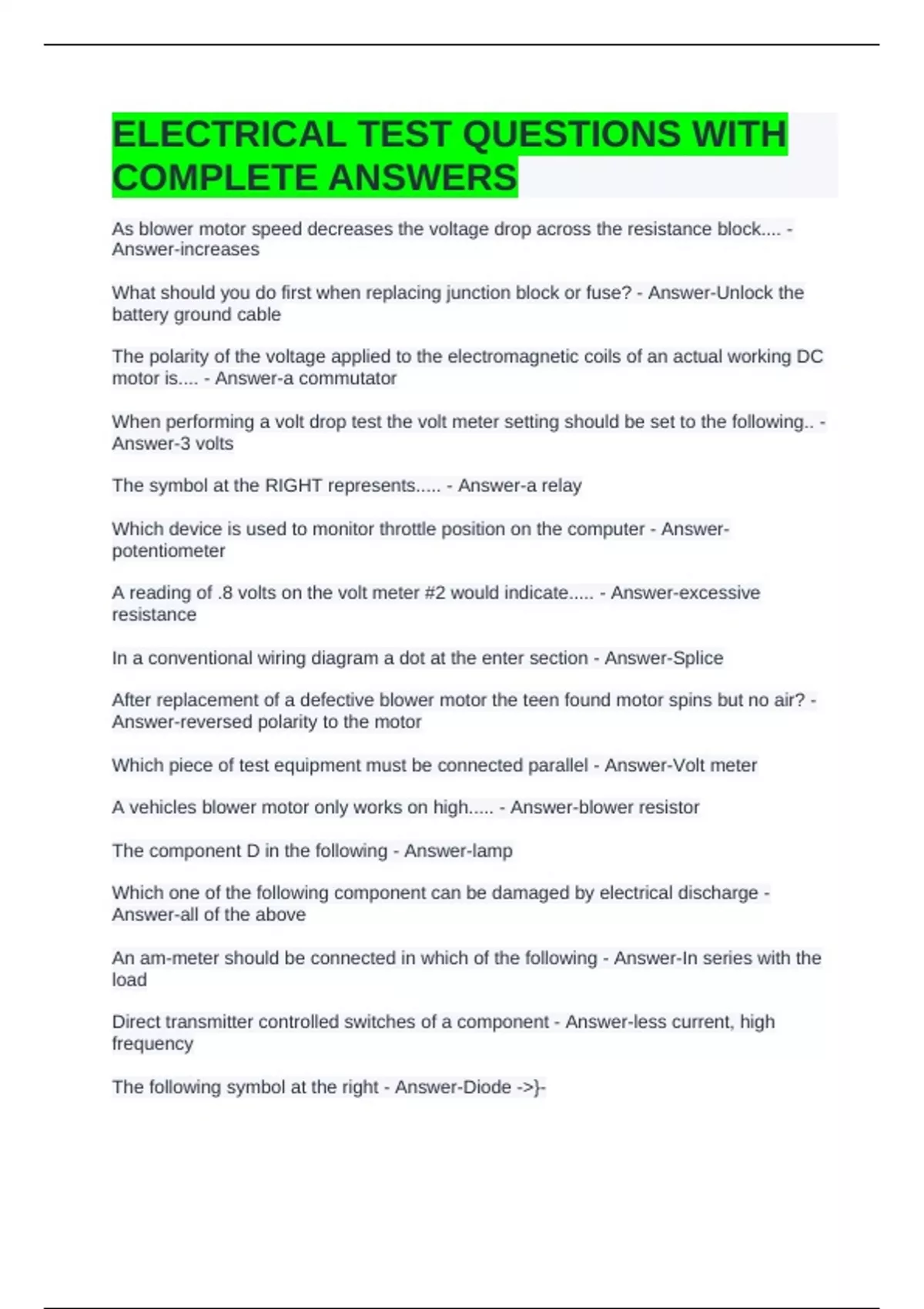 Which piece of test equipment must be connected parallel - Answer-Volt meter