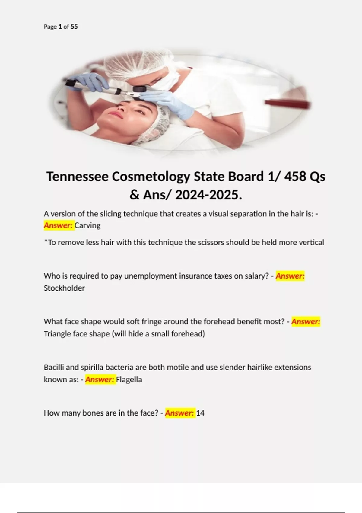 Tennessee Cosmetology State Board 1/ 458 Qs