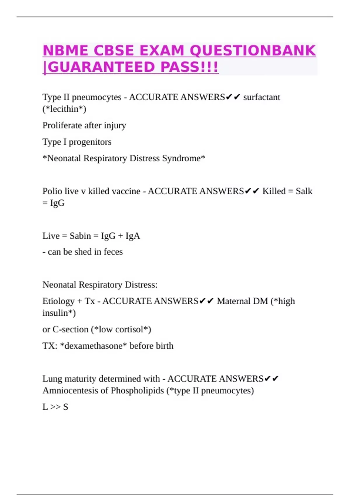 Lung maturity determined with - ACCURATE ANSWERS✔✔