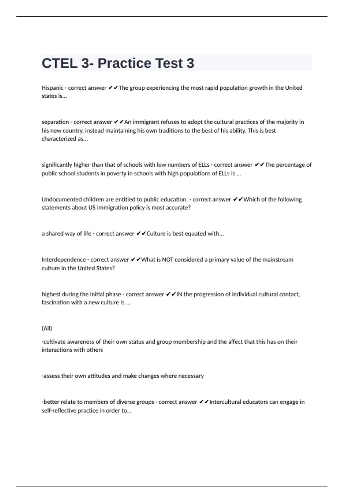 separation - correct answer ✔✔An immigrant refuses to adopt the cultural practices of the majority in