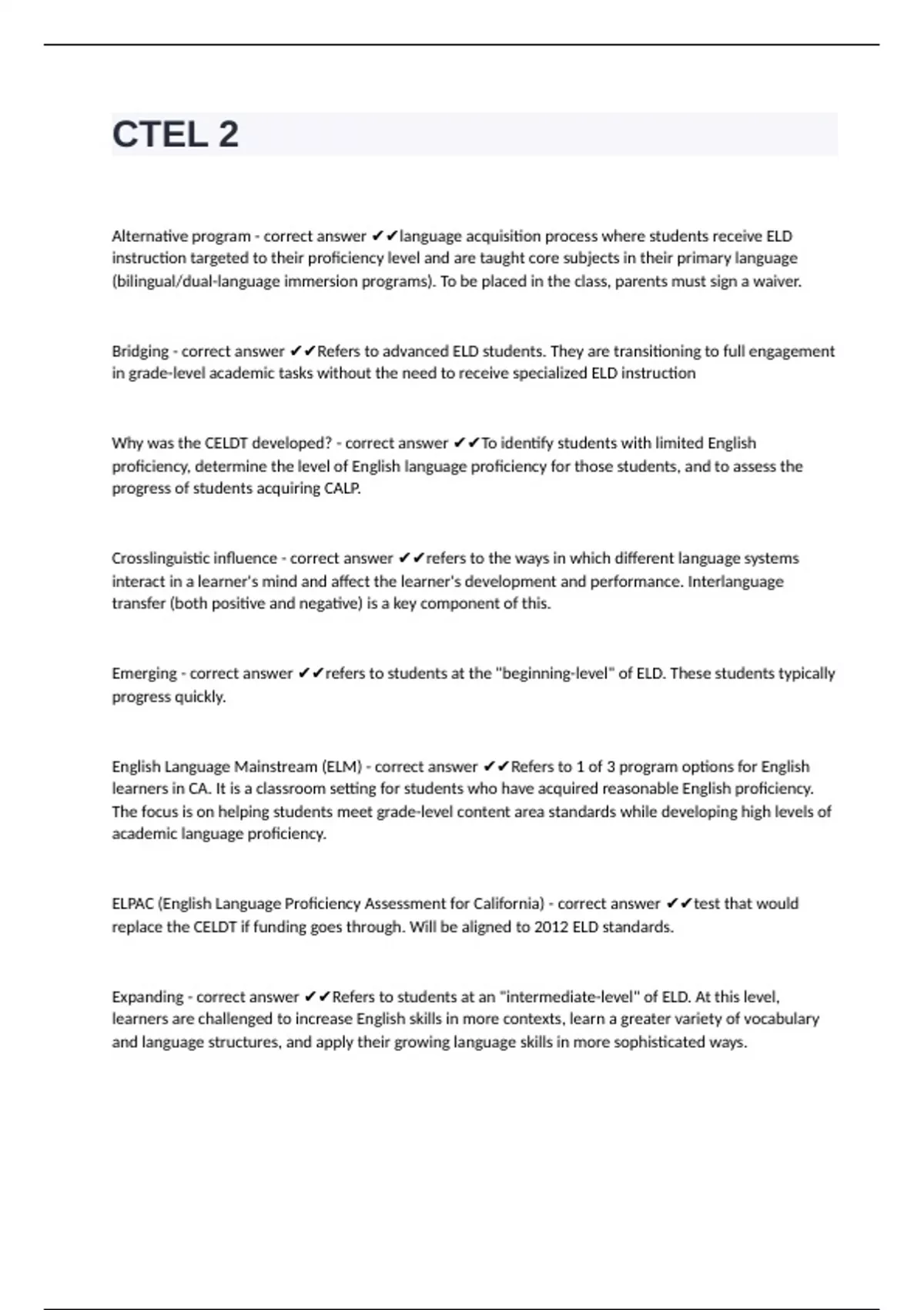 Alternative program - correct answer ✔✔language acquisition process where students receive ELD