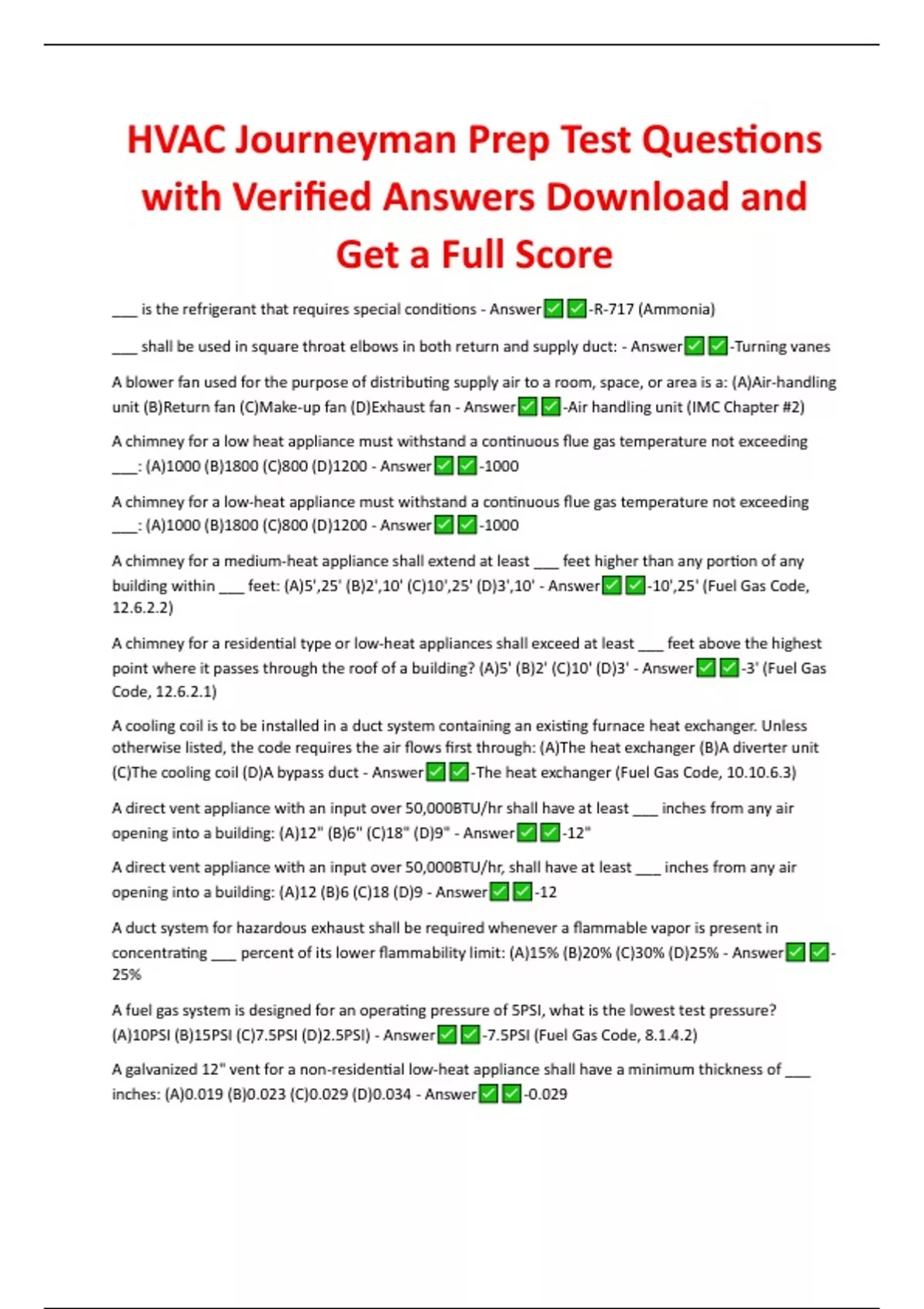 HVAC Journeyman Prep Test Questions with Verified Answers Download and Get a Full Score