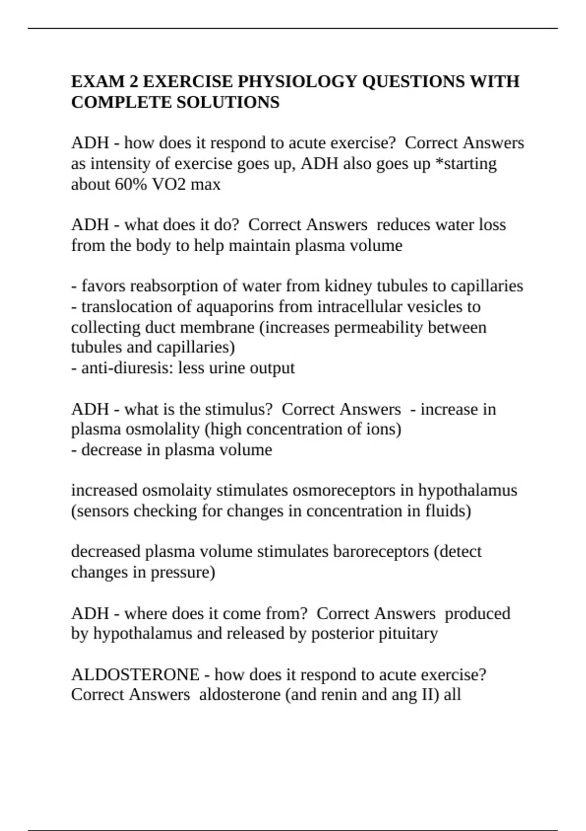 ADH - how does it respond to acute exercise? Correct Answers