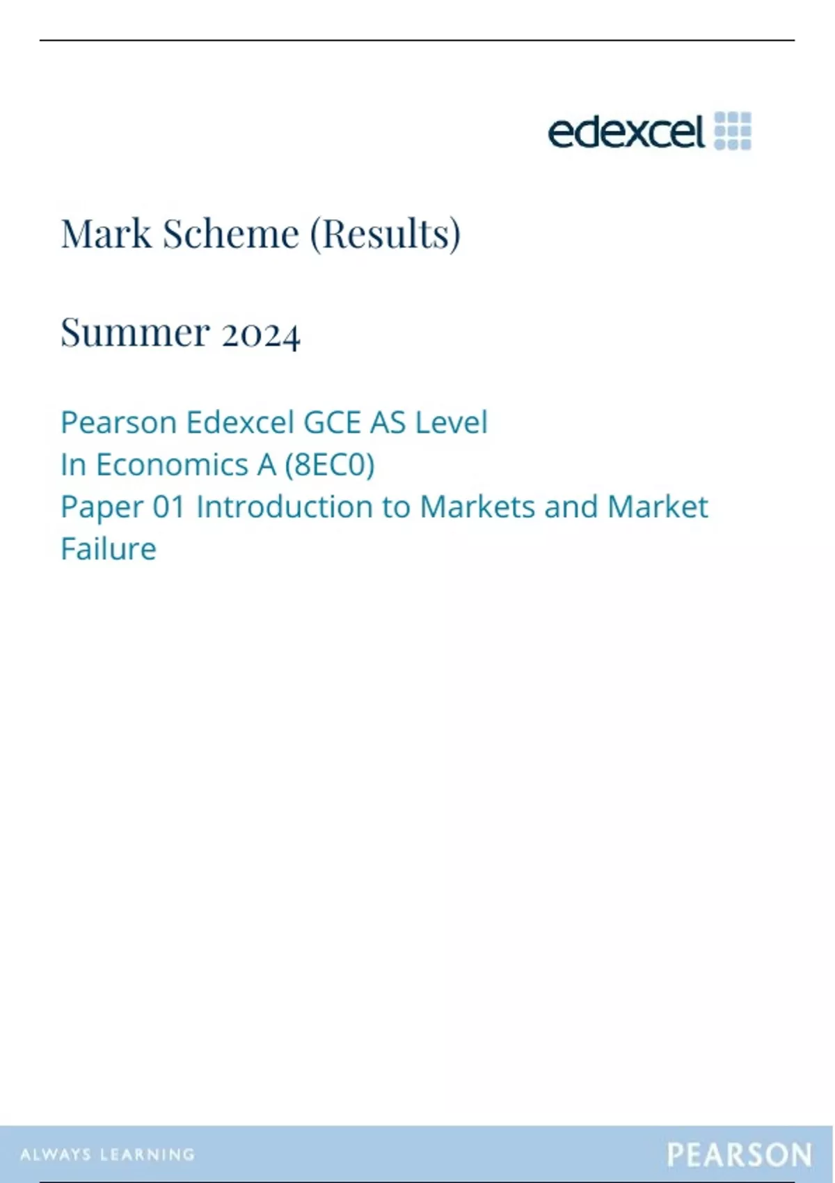 Mark Scheme (Results) Summer 2024 Pearson Edexcel Advanced Subsidiary In Biology B (8BI0) Paper 02: Core Physiology and Ecology