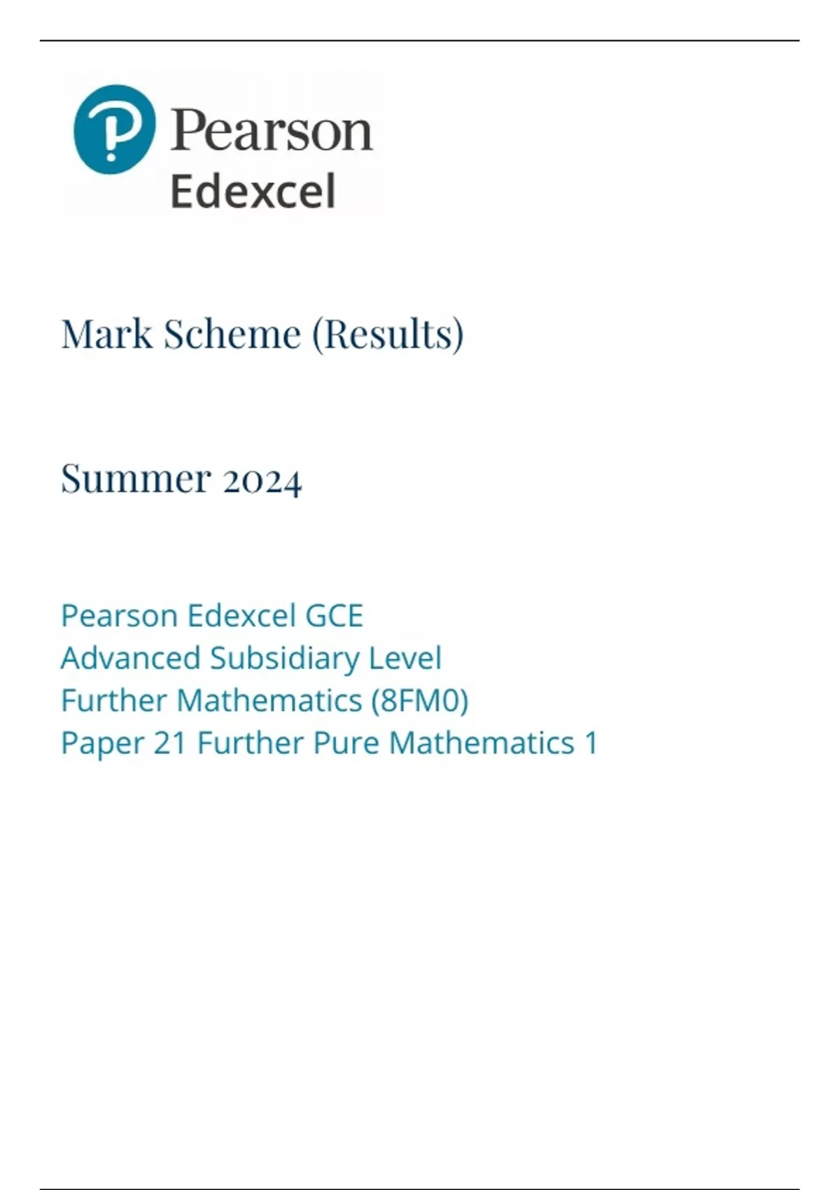 Mark Scheme (Results) Summer 2024 Pearson Edexcel Advanced Subsidiary In Biology B (8BI0) Paper 02: Core Physiology and Ecology