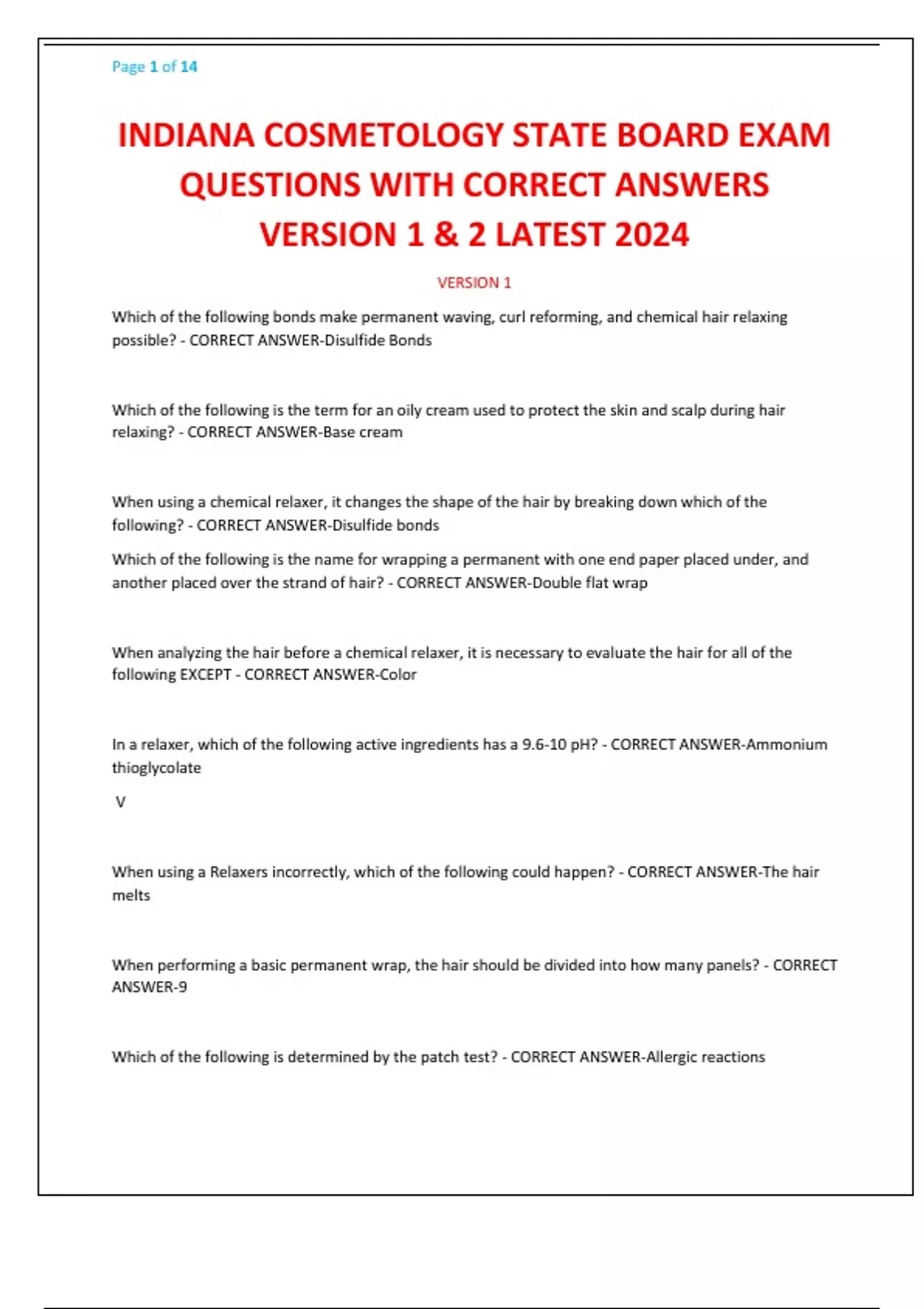 INDIANA COSMETOLOGY STATE BOARD EXAM