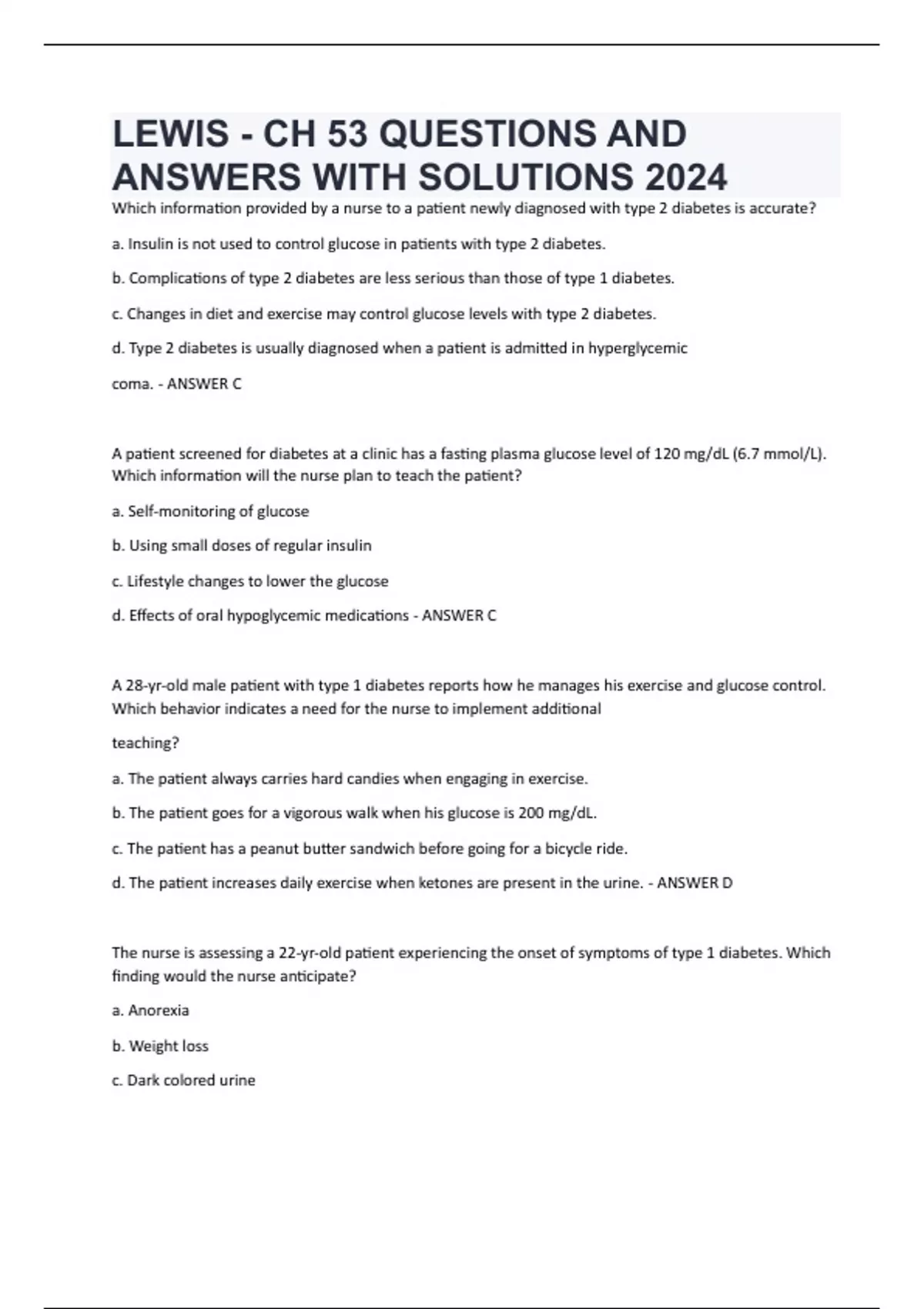 LEWIS - CH 53 QUESTIONS AND ANSWERS WITH SOLUTIONS 2024