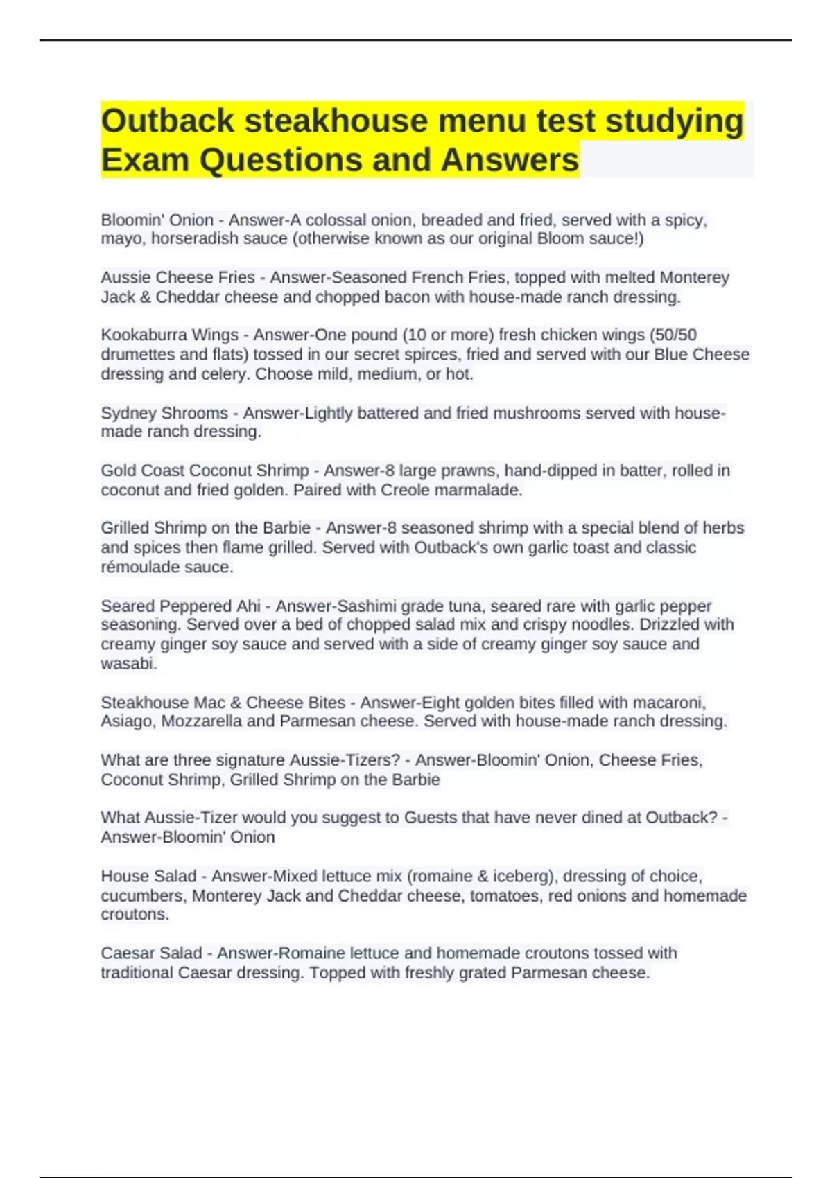 What are three signature Aussie-Tizers? - Answer-Bloomin' Onion, Cheese Fries,