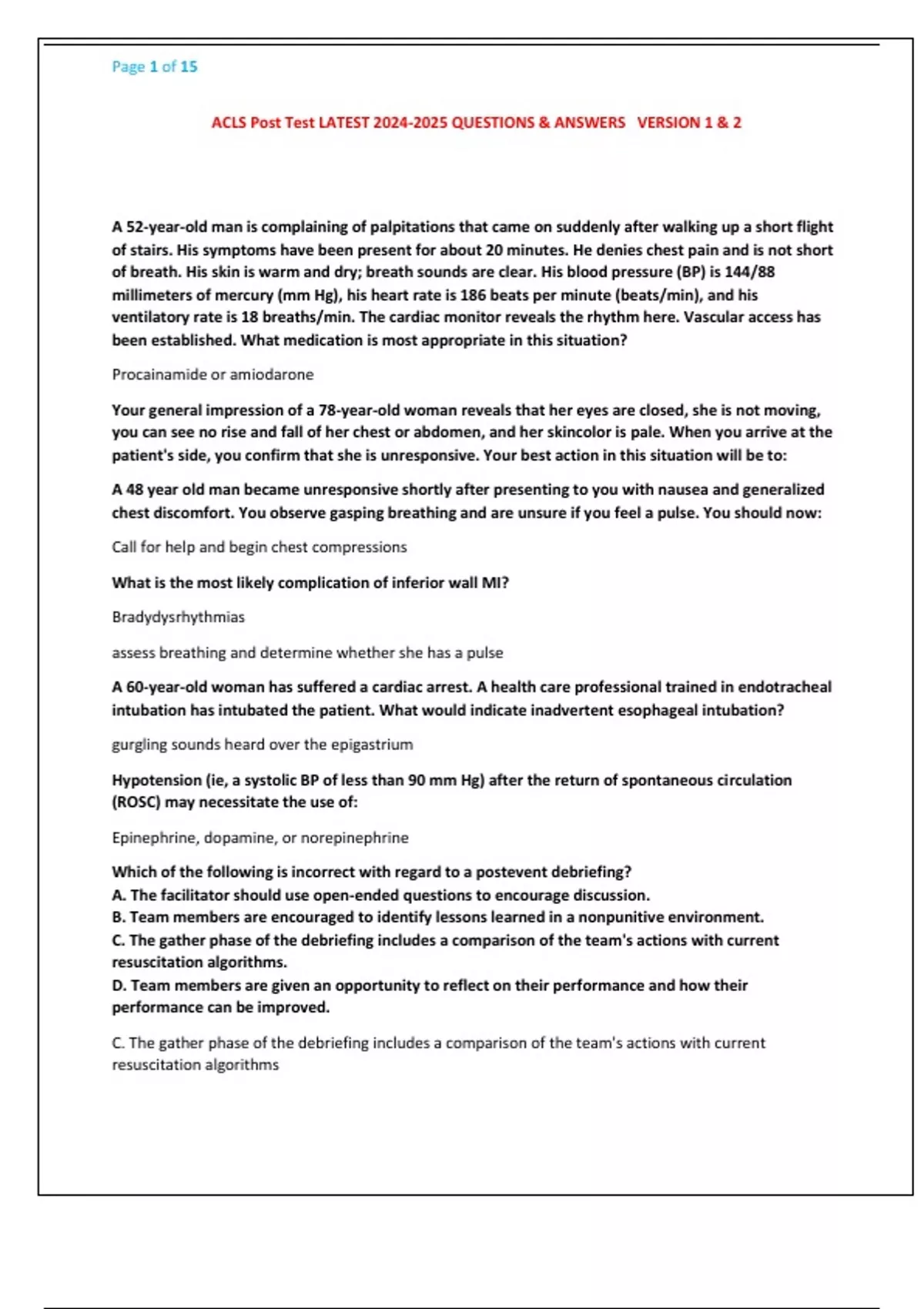 ACLS Post Test LATEST 2024-2025 QUESTIONS & ANSWERS VERSION 1 & 2