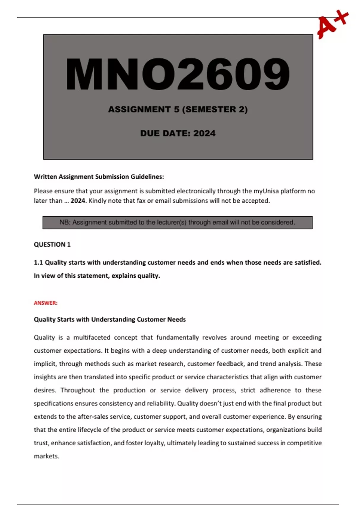 Please ensure that your assignment is submitted electronically through the myUnisa platform no