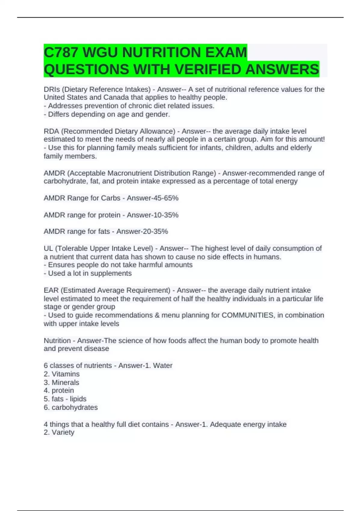 C787 WGU NUTRITION EXAM QUESTIONS WITH VERIFIED ANSWERS