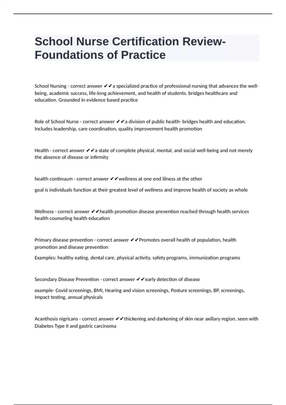 Health - correct answer ✔✔a state of complete physical, mental, and social well-being and not merely
