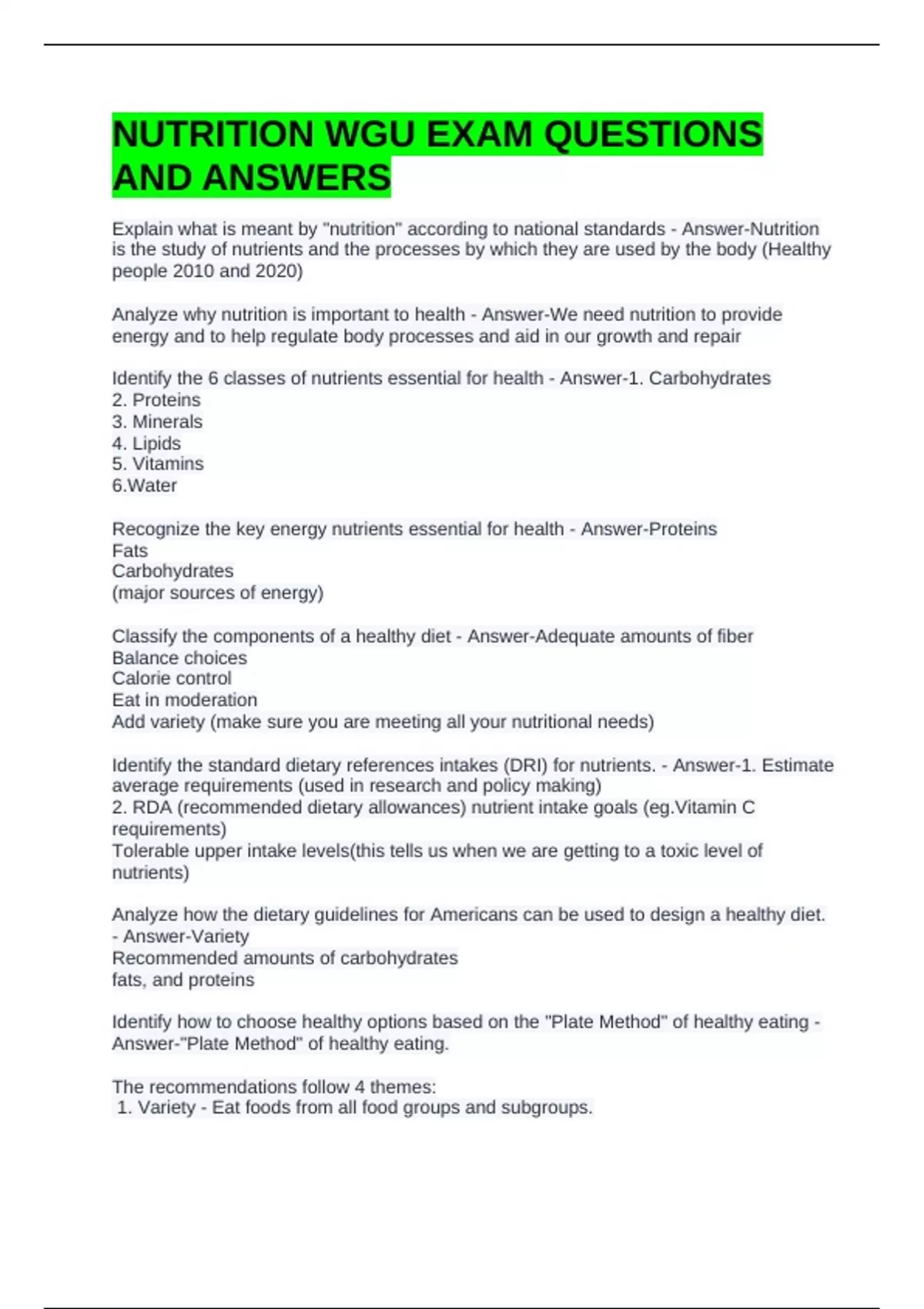 NUTRITION WGU EXAM QUESTIONS AND ANSWERS