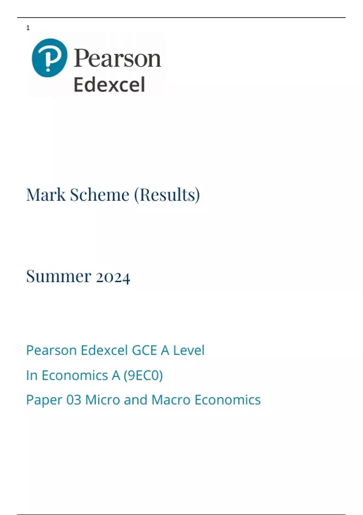 Mark Scheme (Results) Summer 2024 Pearson Edexcel GCE A Level In Economics A (9EC0) Paper 03 Micro and Macro Economics