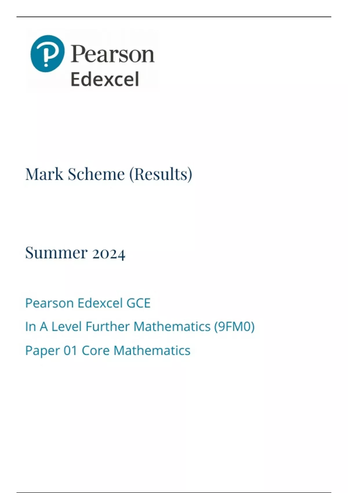 Mark Scheme (Results) Summer 2024 Pearson Edexcel GCE In A Level Further Mathematics (9FM0) Paper 01 Core Mathematics