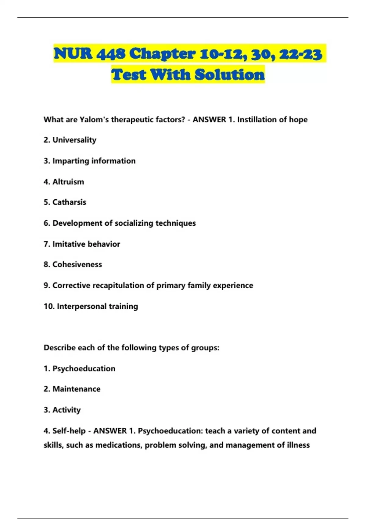 What are Yalom's therapeutic factors? - ANSWER 1. Instillation of hope
