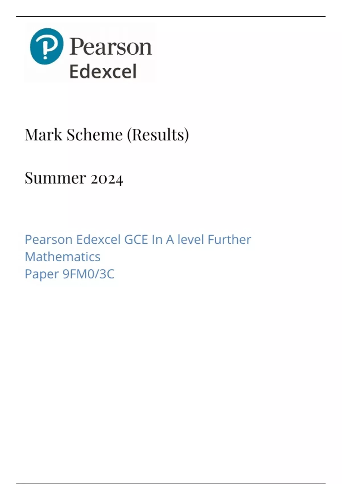Mark Scheme (Results) Summer 2024 Pearson Edexcel GCE In A level Further Mathematics Paper 9FM0/3C