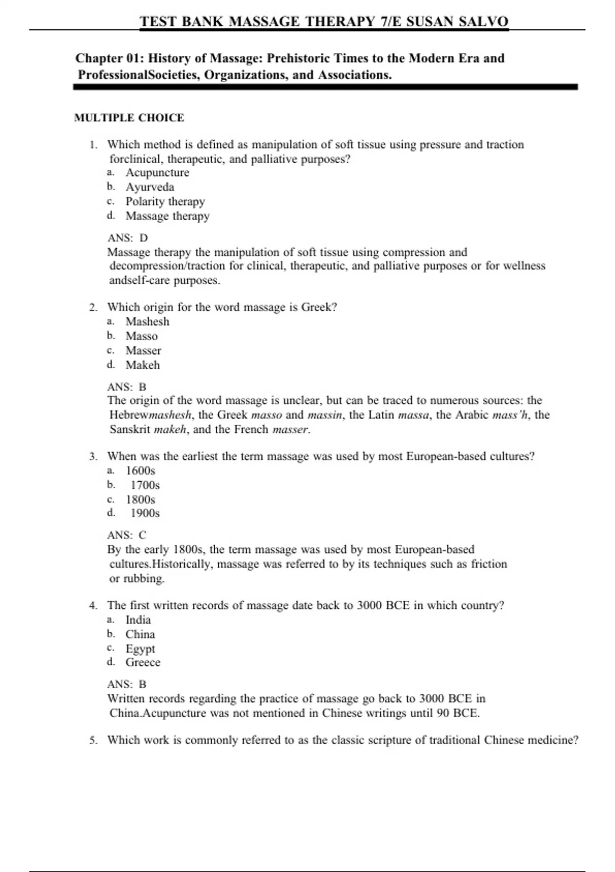 , TEST BANK MASSAGE THERAPY 7/E SUSAN SALVOm7 m7 m7 m7 m7 m7