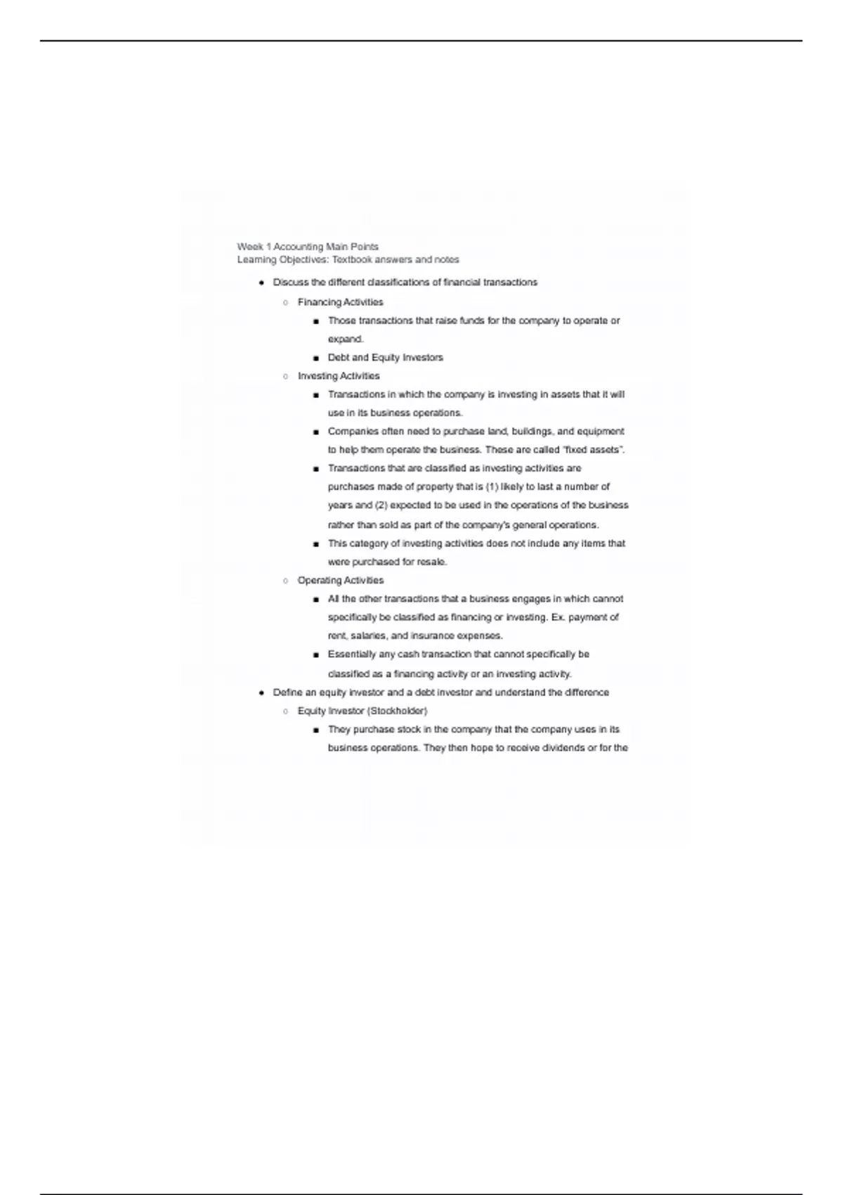 Week 1 Accounting Main Points