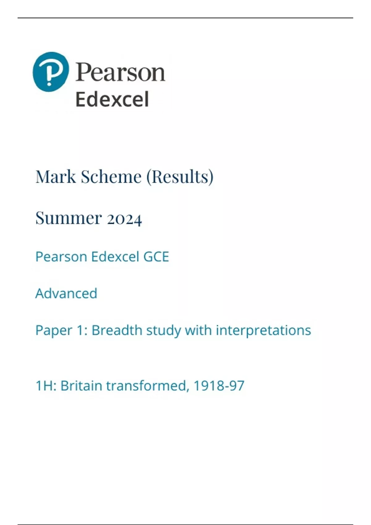Mark Scheme (Results) Summer 2024 Pearson Edexcel In GCE History (8HI0/1F) Advanced Subsidiary Paper 1: Breadth study with interpretations Option 1F: In search of the American dream: the USA, c1917–96
