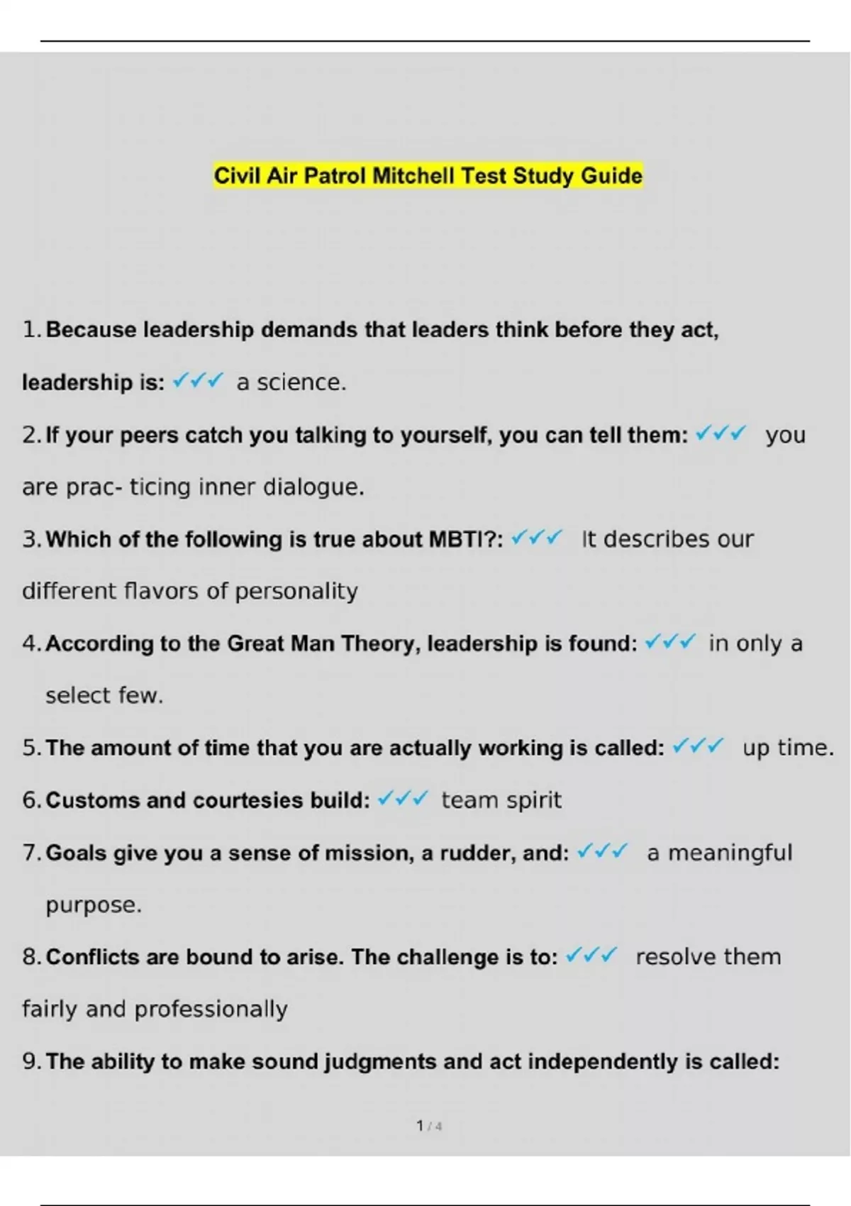 Civil Air Patrol Mitchell Test Study Guide 2024 with complete solution