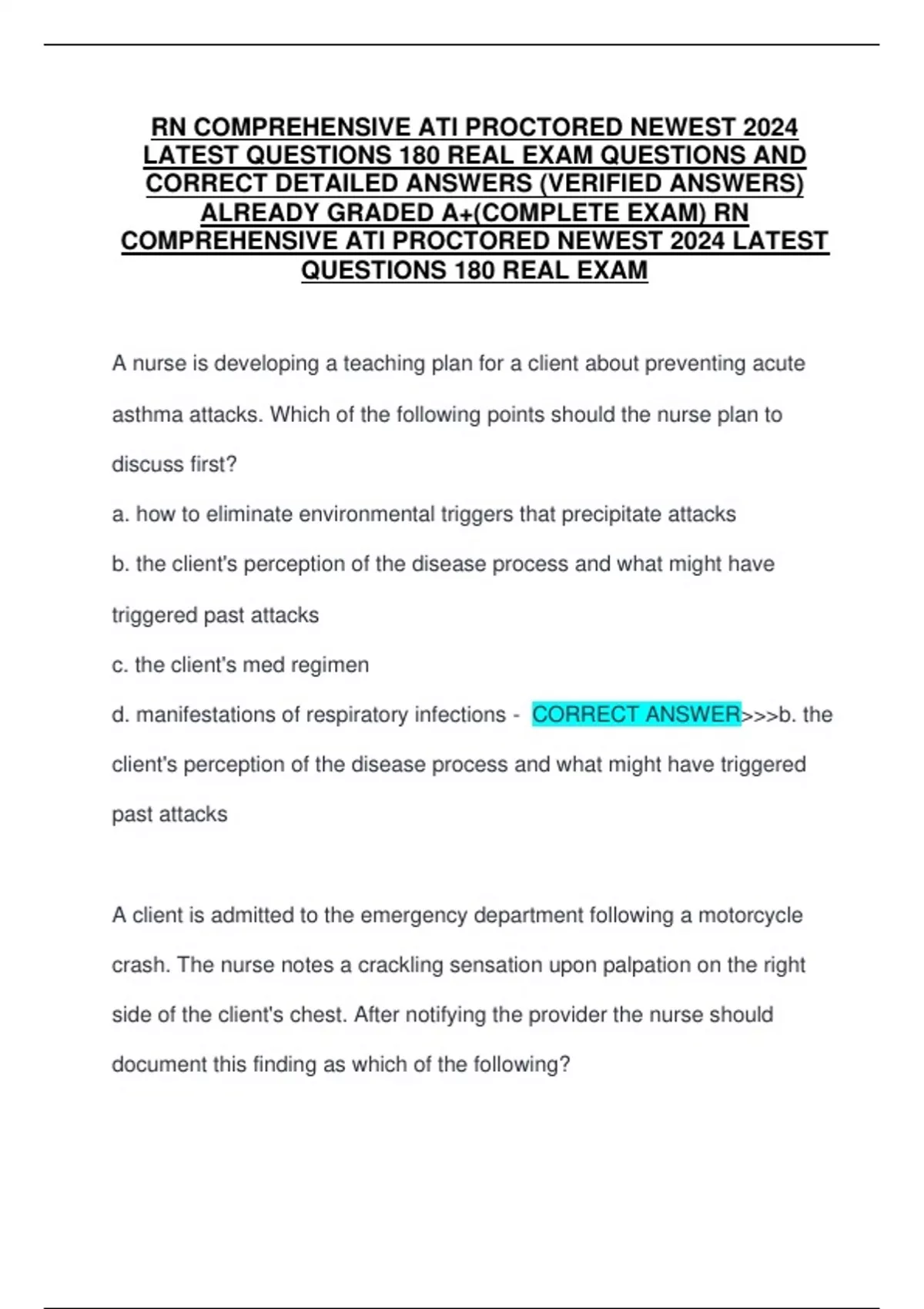 d. tactile fremitus - CORRECT ANSWER>>>c. crepitus