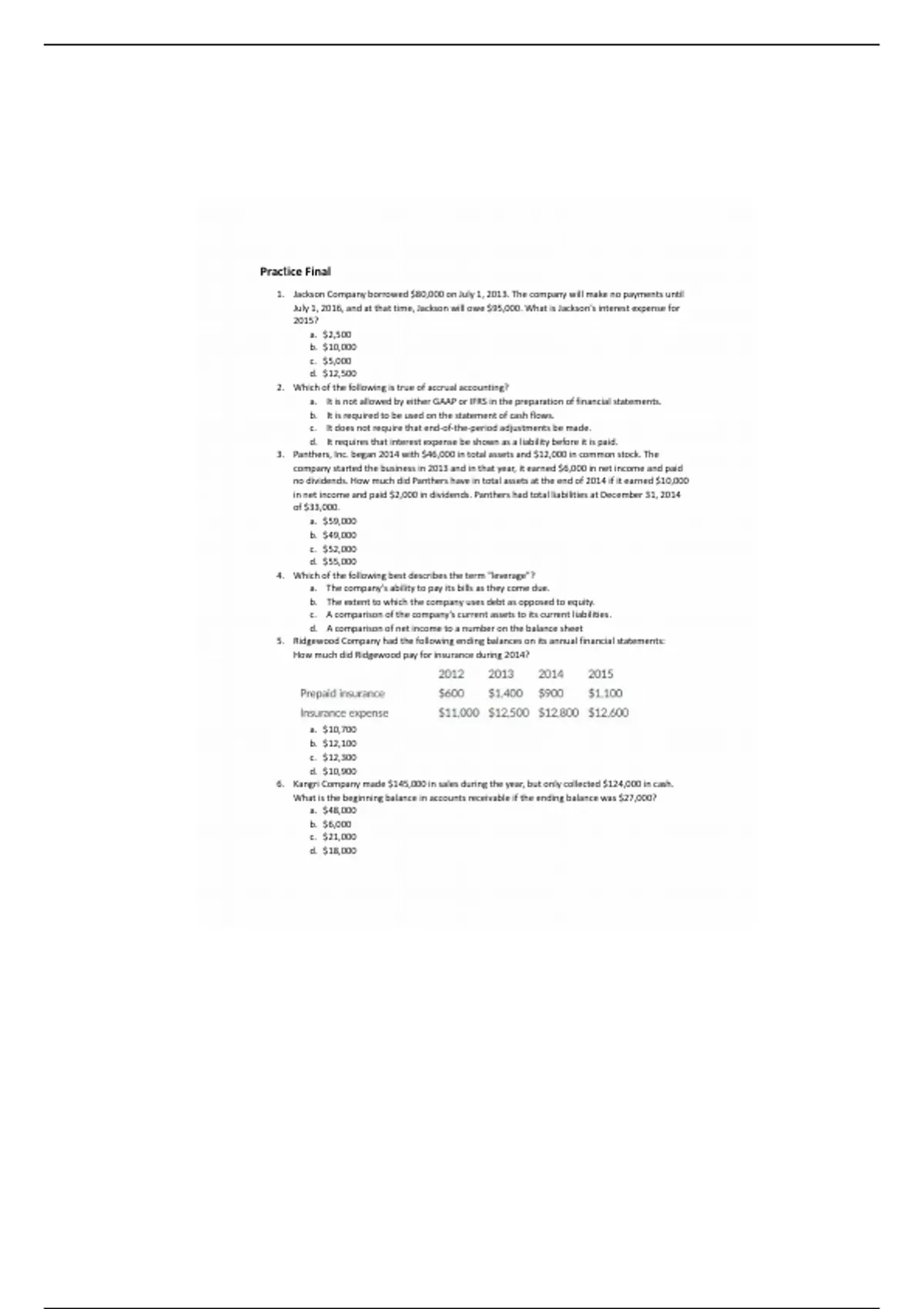 In-Class Practice Final Questions for BUS -A100. *Essential!! *For you, at a price that's fair enough!!