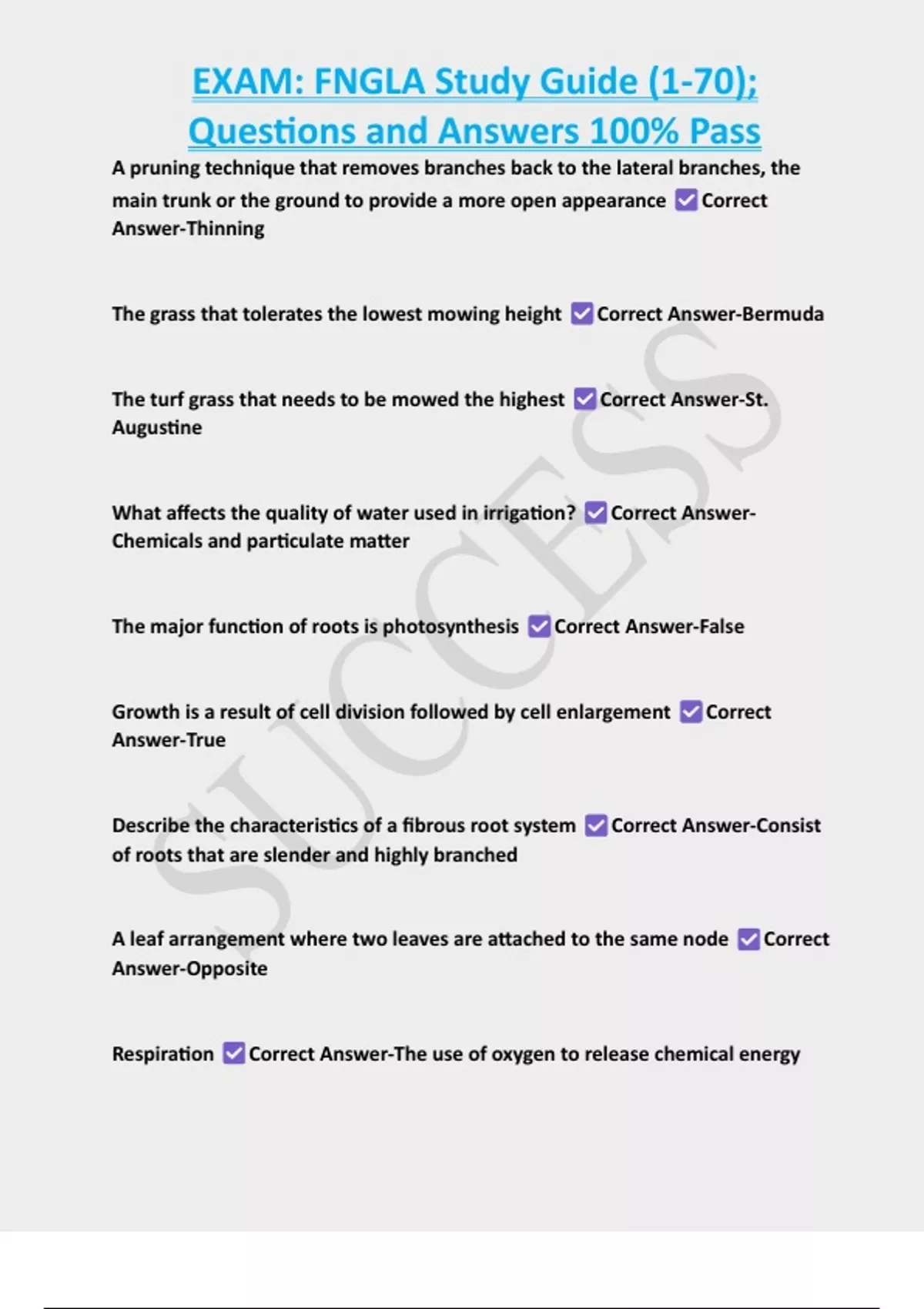 , EXAM: FNGLA Study Guide (1-70);