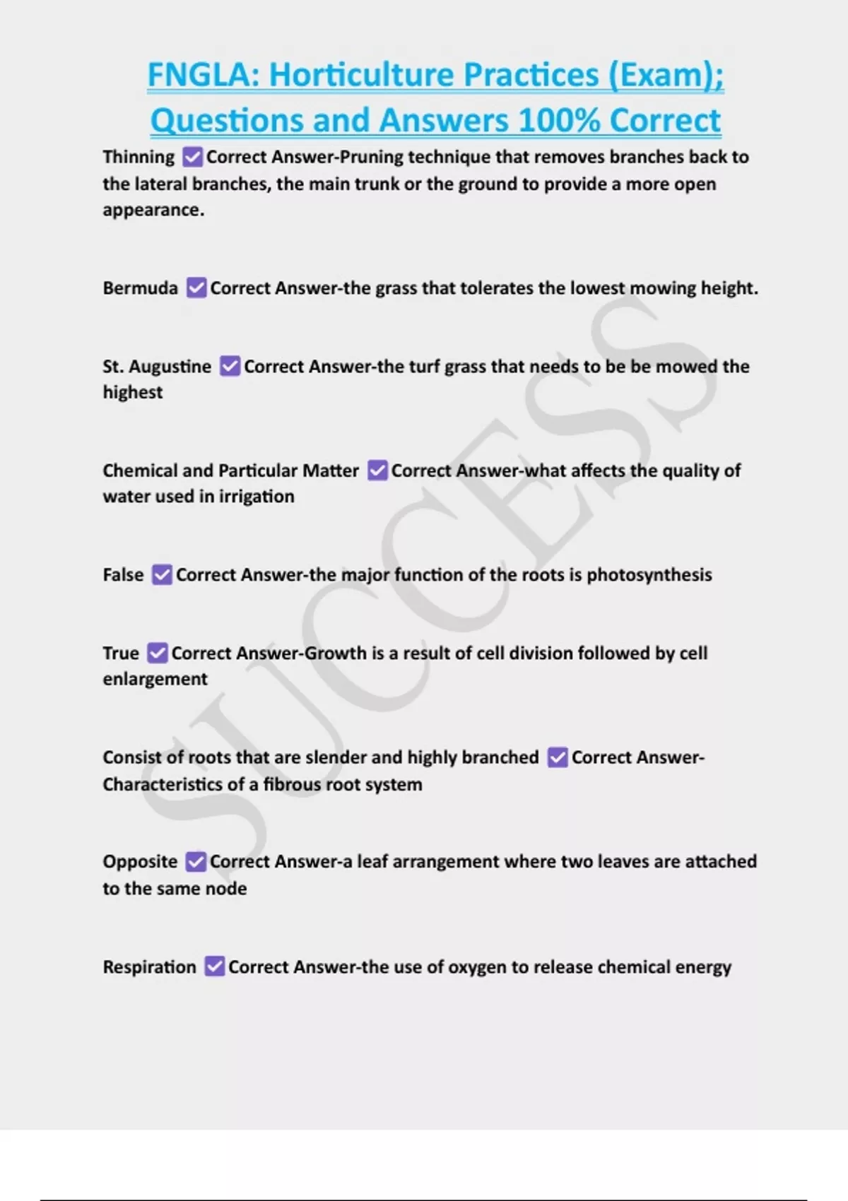 , FNGLA: Horticulture Practices (Exam);