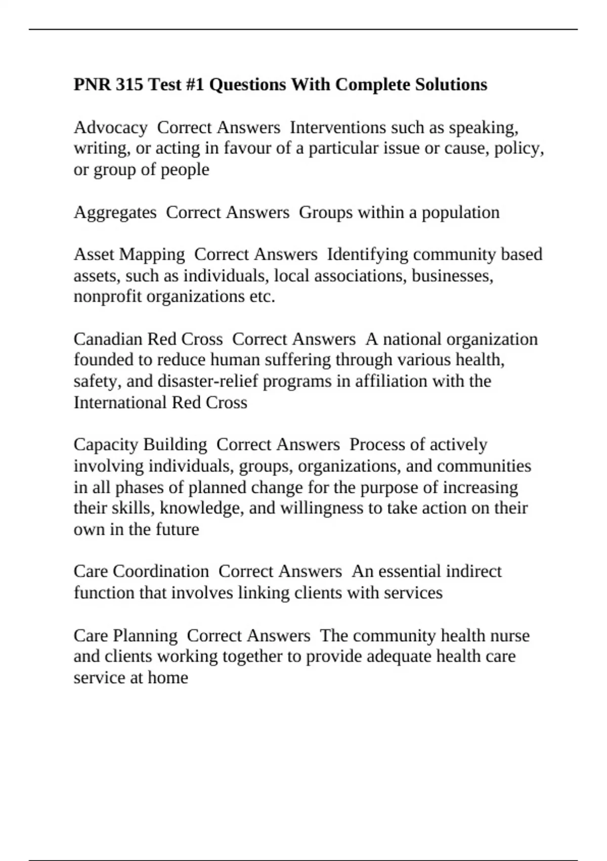 PNR 315 Test #1 Questions With Complete Solutions