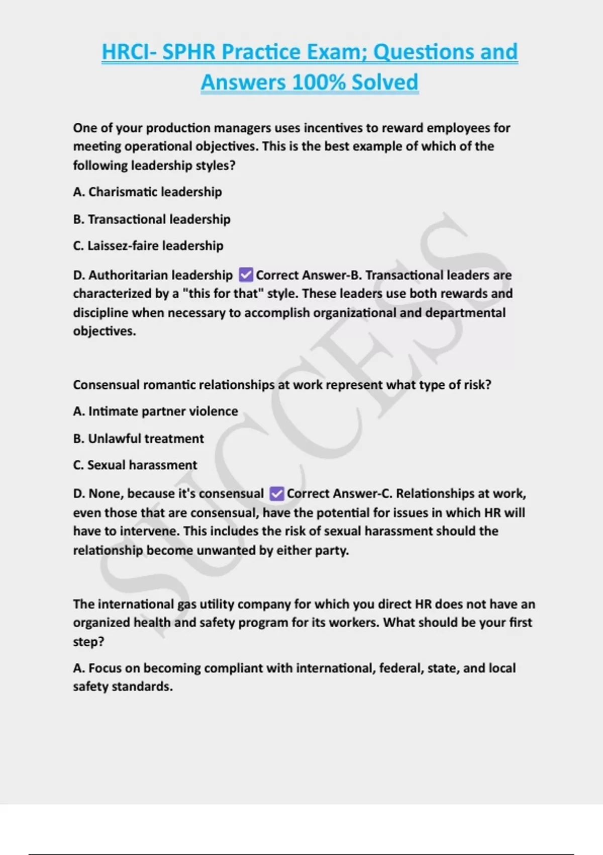 , HRCI- SPHR Practice Exam; Questions and