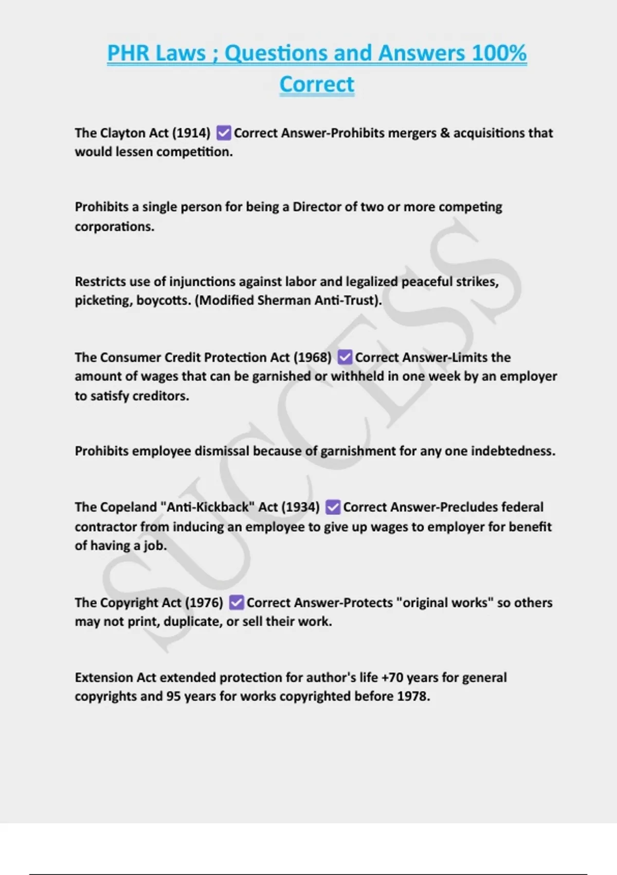 , PHR Laws ; Questions and Answers 100%