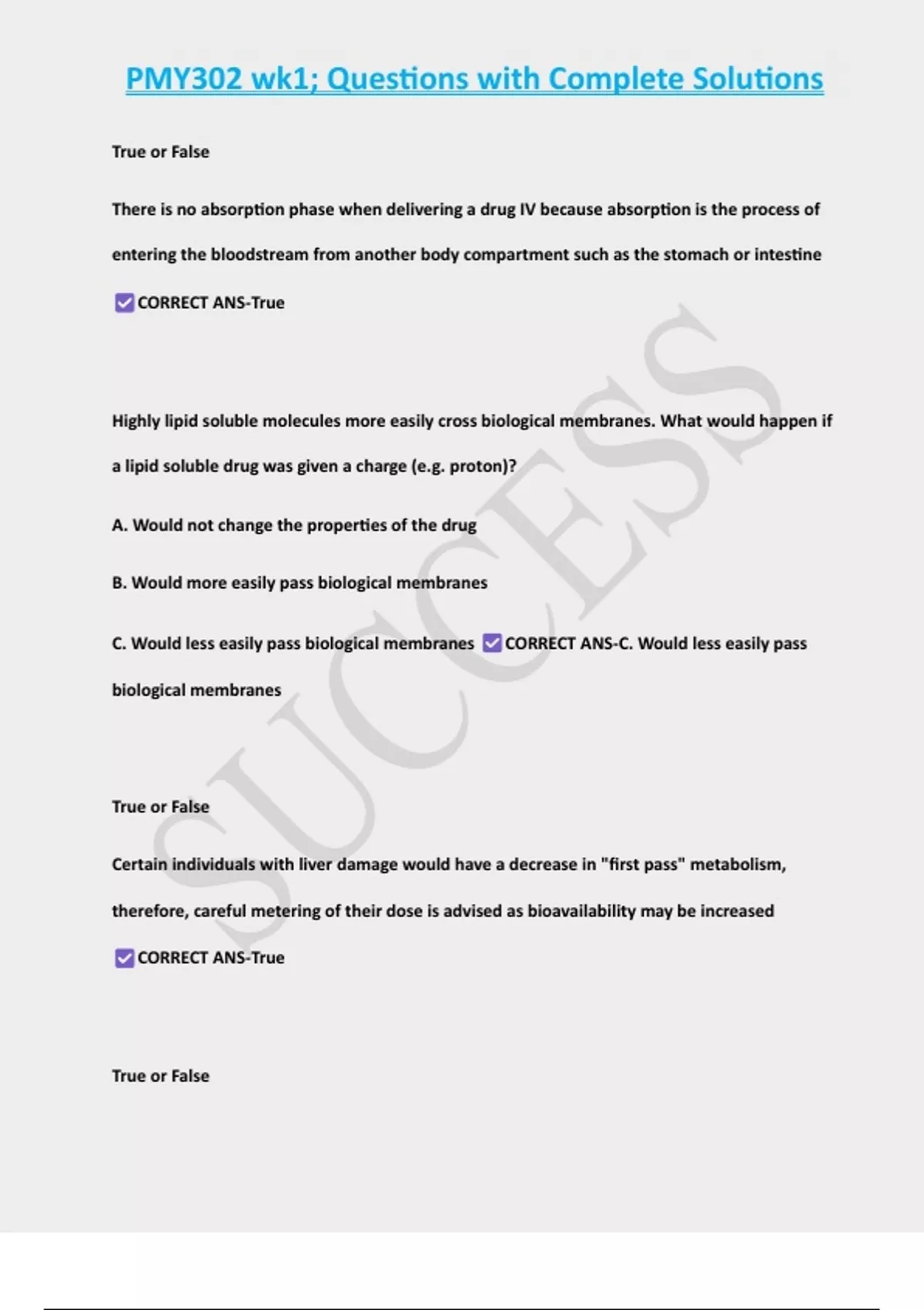 biological membranes well. CORRECT ANS-True