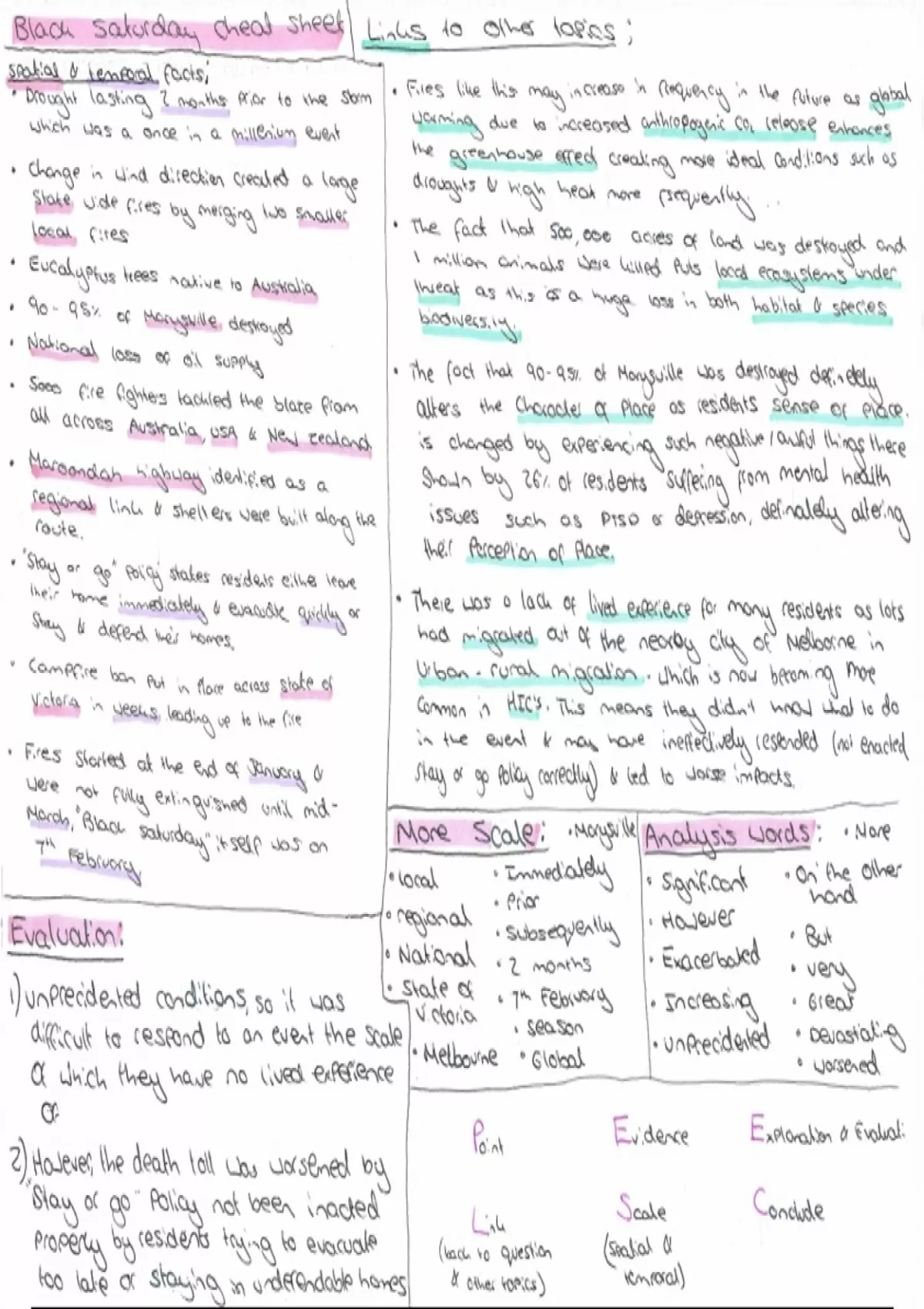 AQA A-Level Black Saturday Wildfires Cheat Sheet