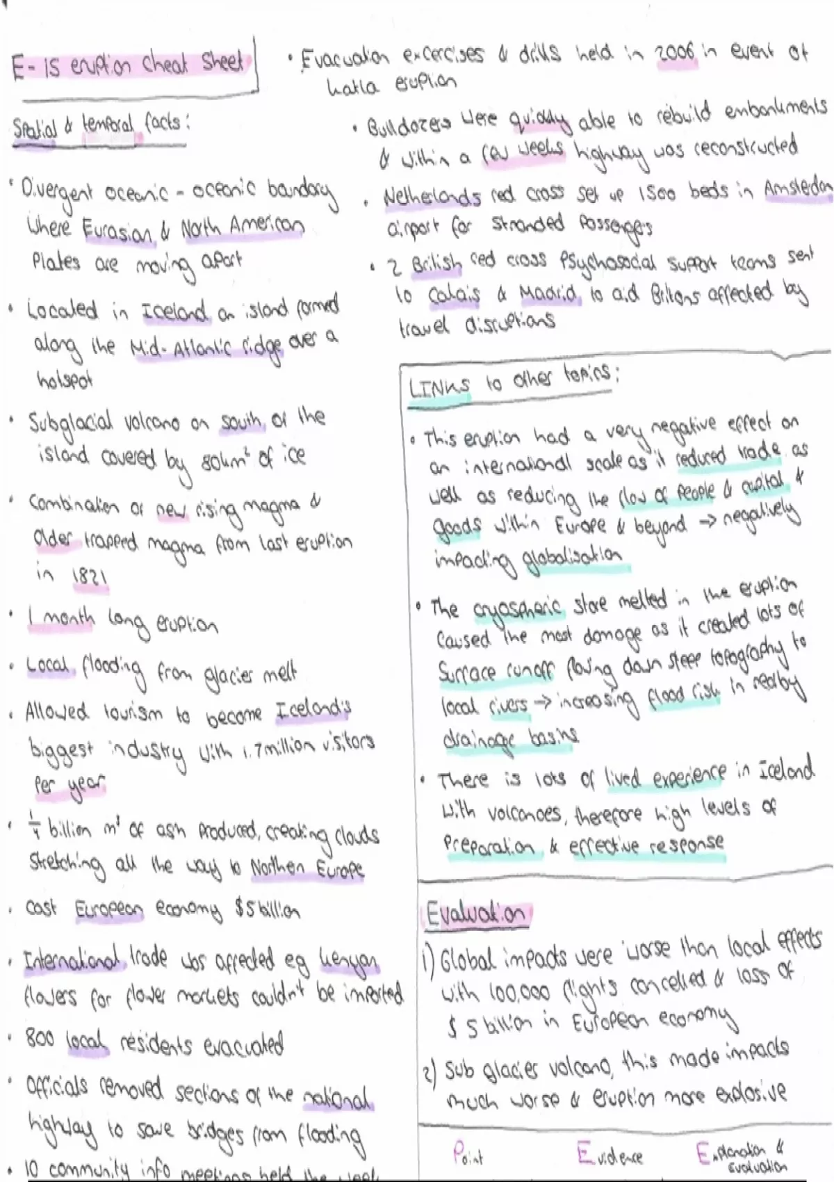 AQA A-Level Geography E-15 eruption Cheat Sheet