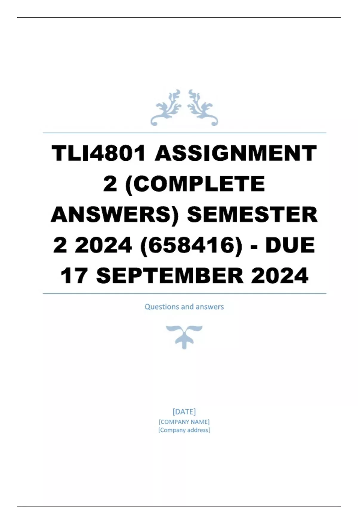 TLI4801 Assignment 2 (COMPLETE ANSWERS) Semester 2 2024 (658416) - DUE 17 September 2024