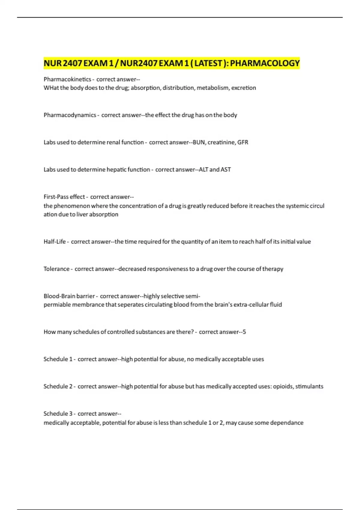 NUR 2407 EXAM 1 / NUR2407 EXAM 1 ( LATEST ): PHARMACOLOGY