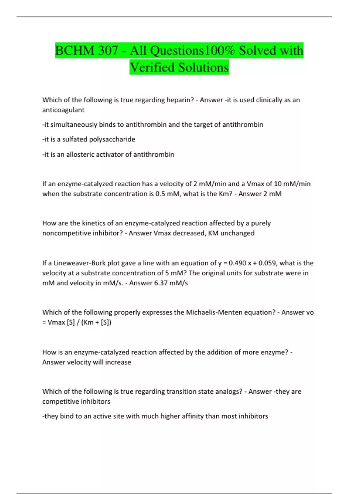 BCHM 307 - All Questions100% Solved with