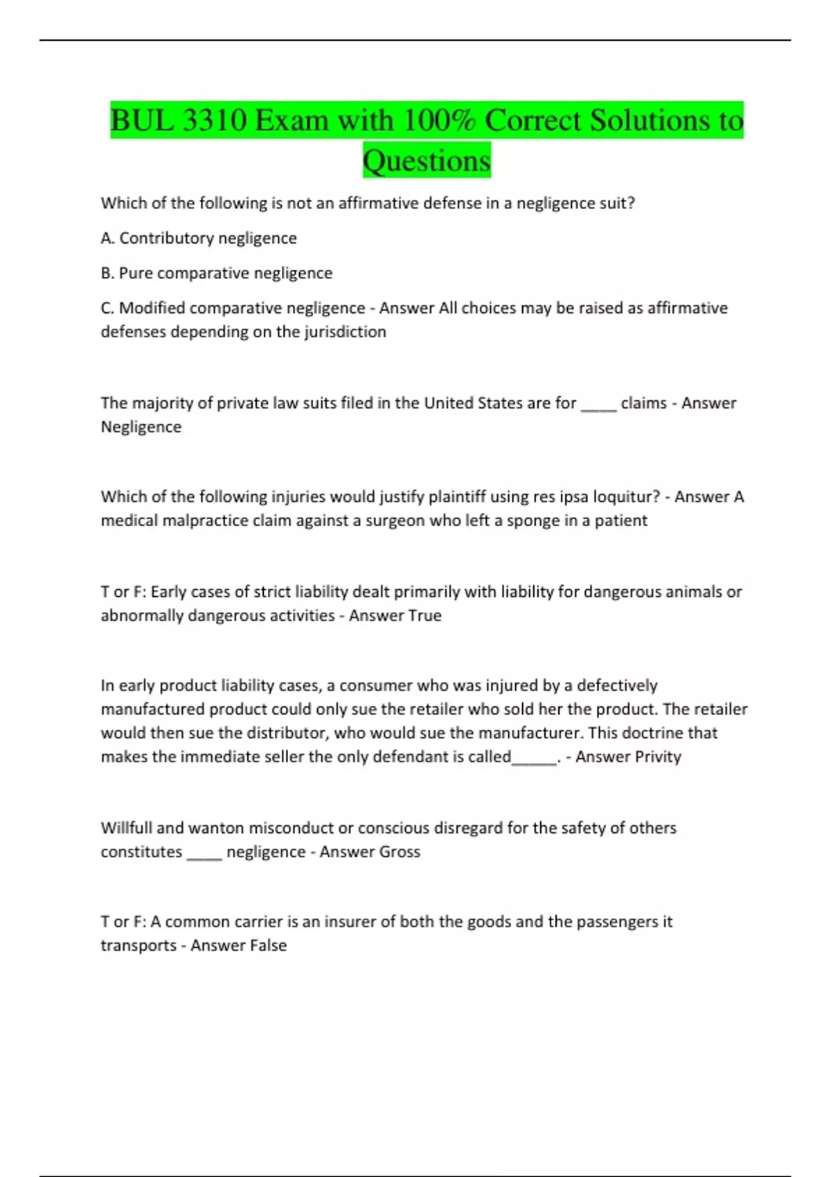 BUL 3310 Exam with 100% Correct Solutions to